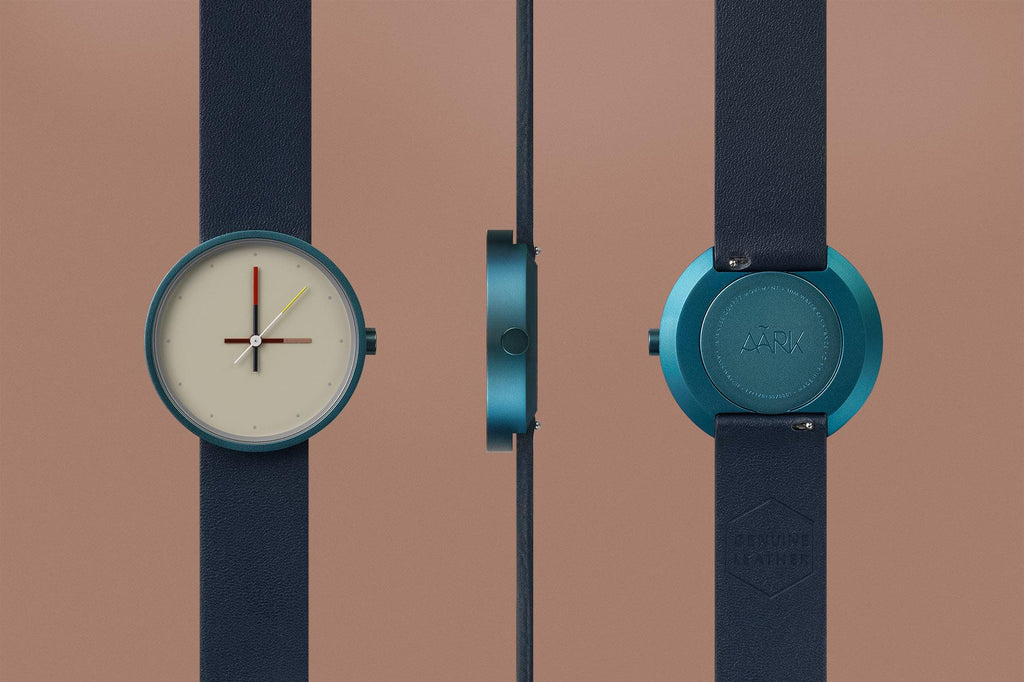 The Accent watch celebrates colour through an unconventional lens; muted base tones subtly play hero to a restrained use of accent hues balanced in a graphic execution that is quintessentially AÃRK.