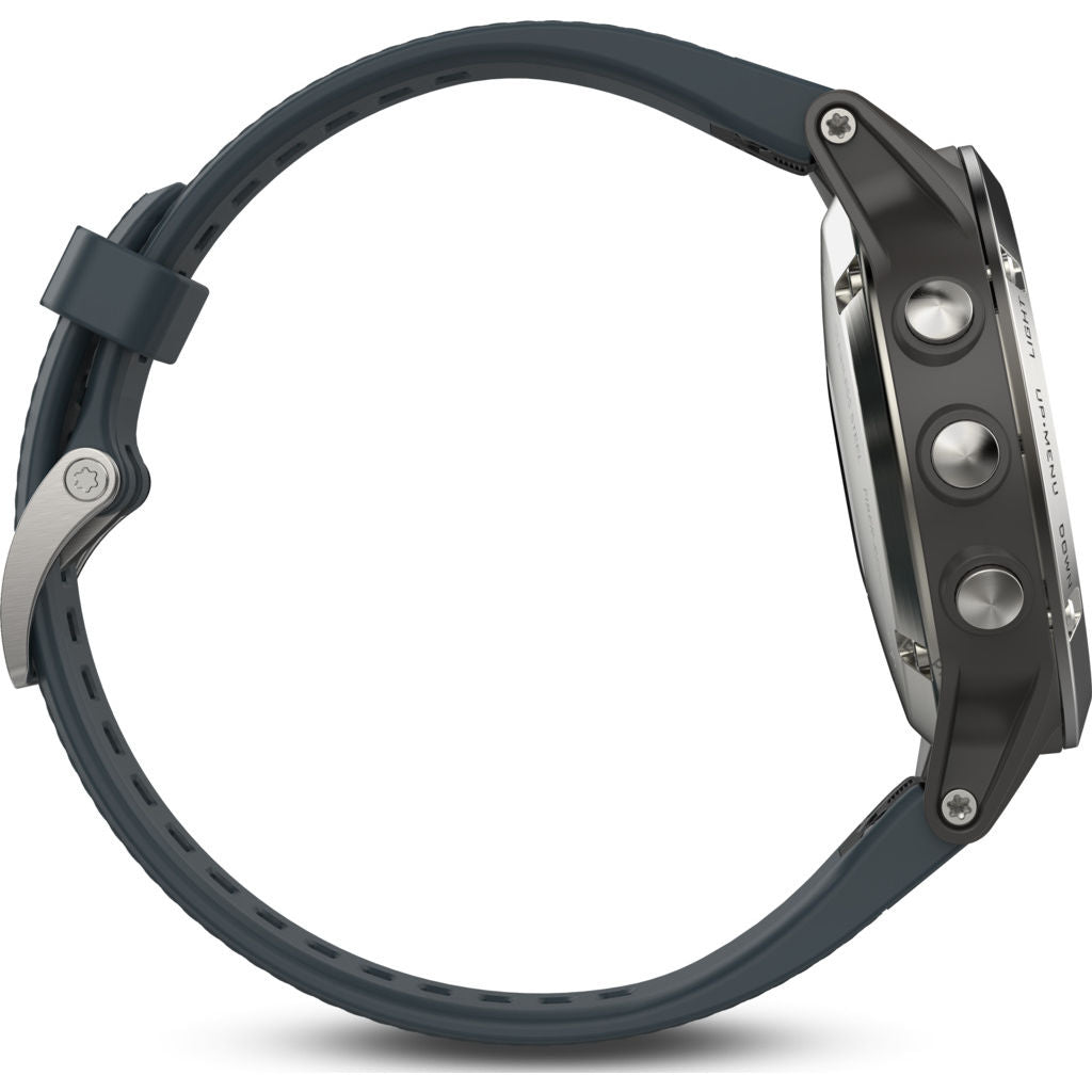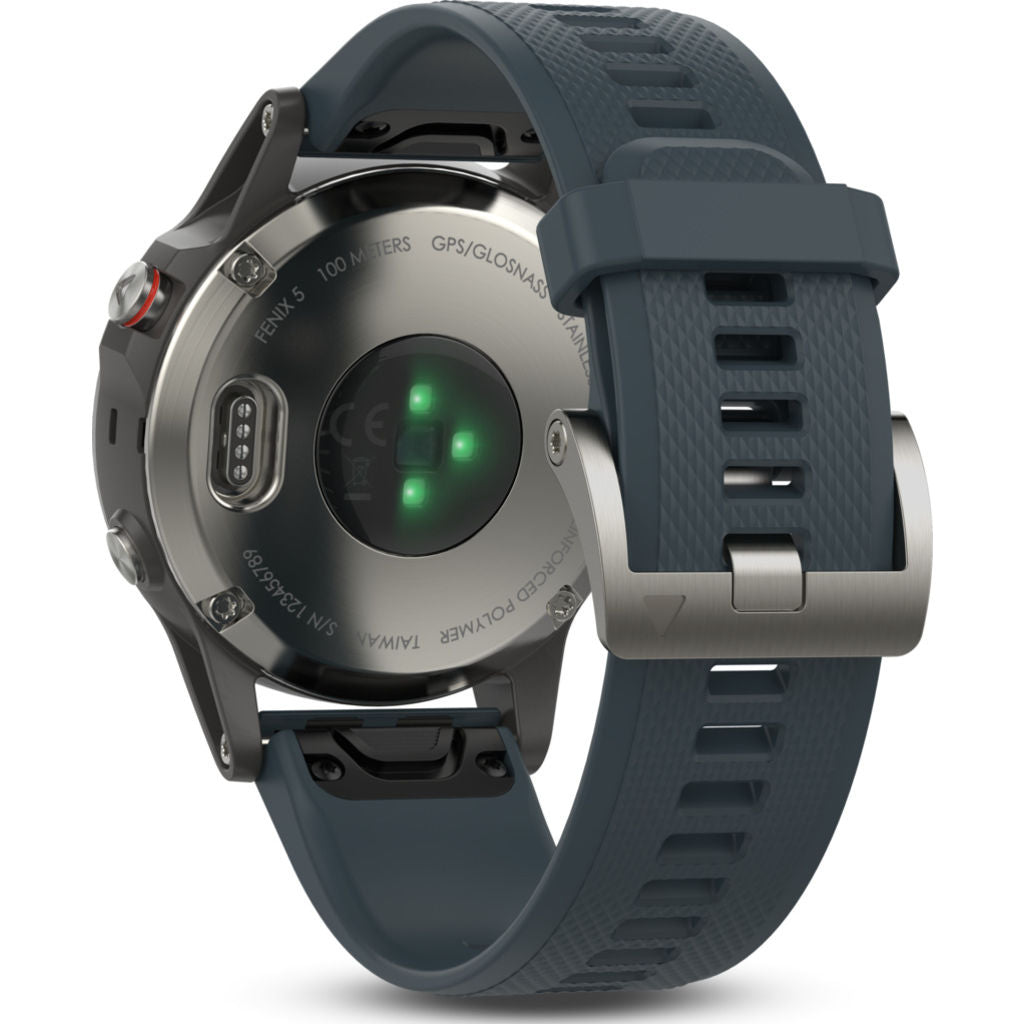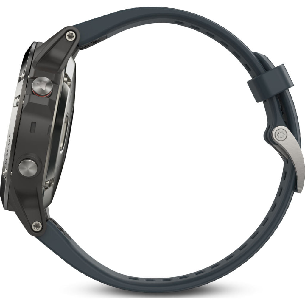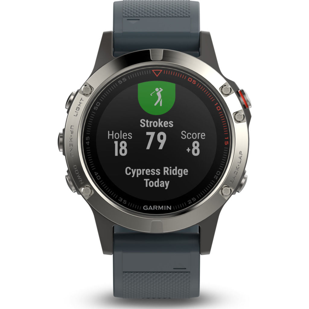 The fēnix 5 multisport GPS watch from Garmin boasts an array of premium features including wrist-based heart rate tracker, advanced GPS, and interchangeable bands for any occasion. The Garmin Fenix 5 can track your fitness levels no matter the sport you're training for, with built-in activity profiles, performance metrics, and smart notifications. All of this packed in a thin, lightweight GPS watch makes the perfect companion for training or every day use.