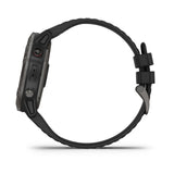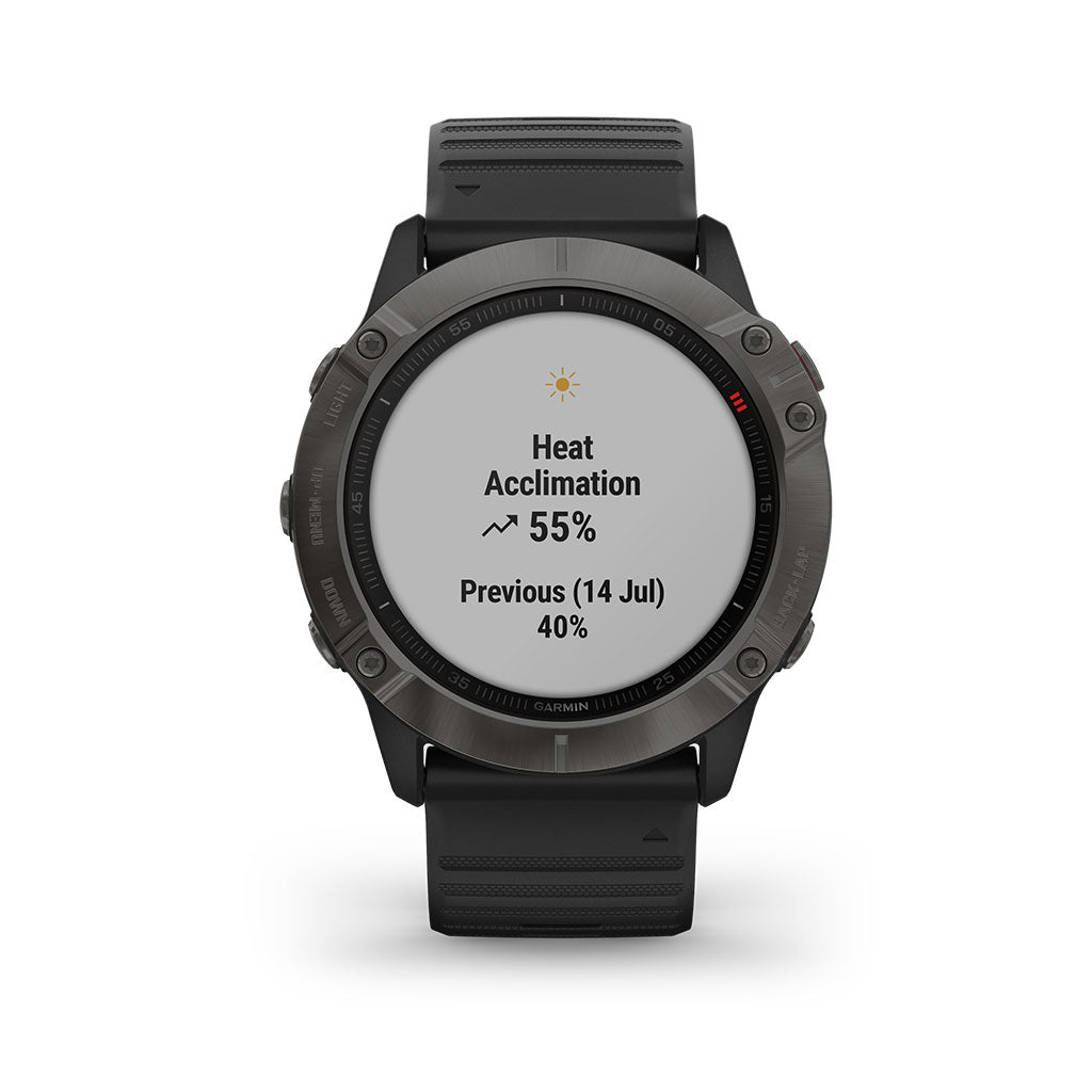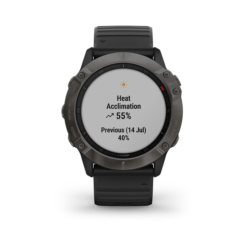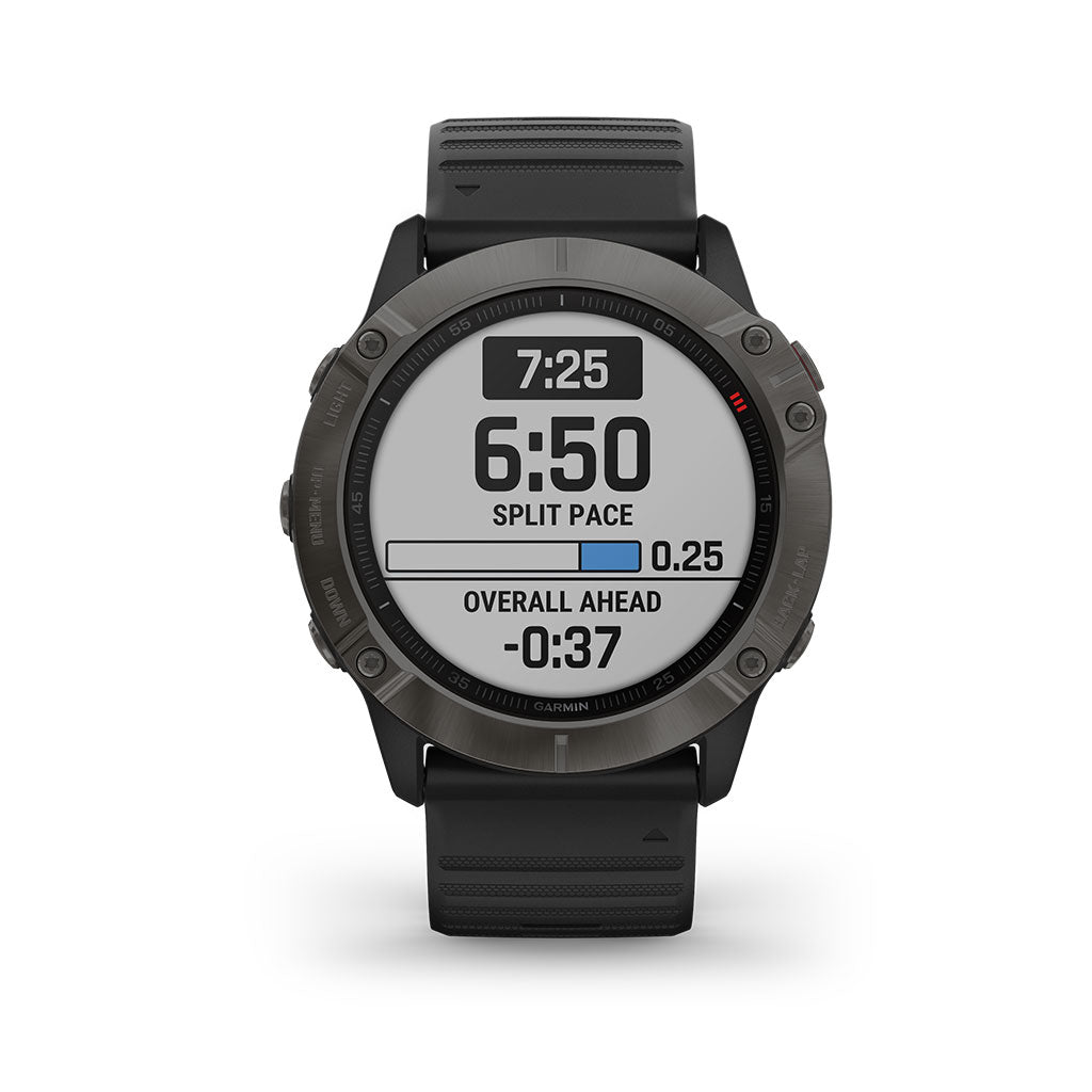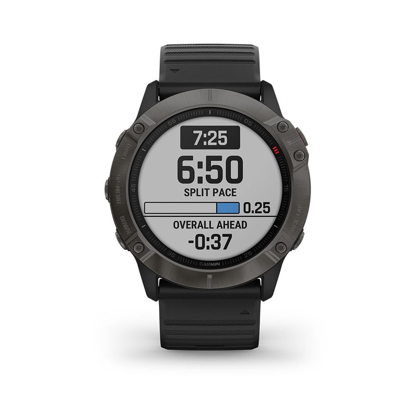With a big, sunlight-readable 1.4" display that's 36% larger than previous fenix models, the Carbon Gray DLC with Black Band Garmin 010-02157-10 fenix 6X Sapphire Multisport GPS Watch adds mapping, music, and more to your workouts. It offers training status, running/cycling dynamics, and environmentally adjusted VO2 max estimates. It offers a first-of-its-kind PacePro feature that helps keep your pacing strategy on track, providing grade-adjusted guidance as you run a course. Styled for all-day wearability, this versatile watch comes with preloaded TOPO maps and ski maps for more than 2,000 worldwide ski resorts. Other highlights include enhanced wrist heart rate, smart notifications, Pulse Ox sensing, Garmin Pay contactless payments, and more. Customizable power manager modes let you see and control how various settings and sensors impact battery life. This Sapphire edition adds the quality and durability of a scratch-resistant sapphire lens and other premium materials.