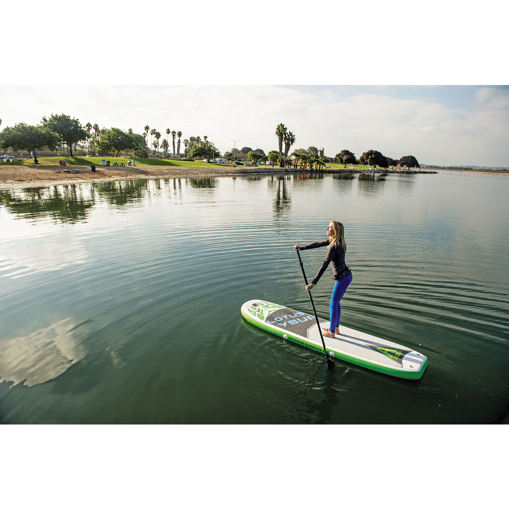 Advanced Elements Lotus YSUP Inflatable SUP Board - The Lotus YSUP Inflatable SUP Board by Advanced Elements is perfectly sized for a stable ride and a balanced yoga session. 10 feet long, 32 inches wide and utilizing 6 inch drop-stitch material, the Lotus features a convenient romovable shoulder carry strap which eliminates the need for a bulky carry handle in the middle of the board. This provides a clear deck surface and a nearly full-length traction pad for maximum comfort. The YSUP is simple, light and compact, perfect for travel anywhere. Don't let the lack of the perfect SUP board keep you from experiencing nirvana, make sure you have the Lotus YSUP Inflatable SUP Board by Advanced Elements.