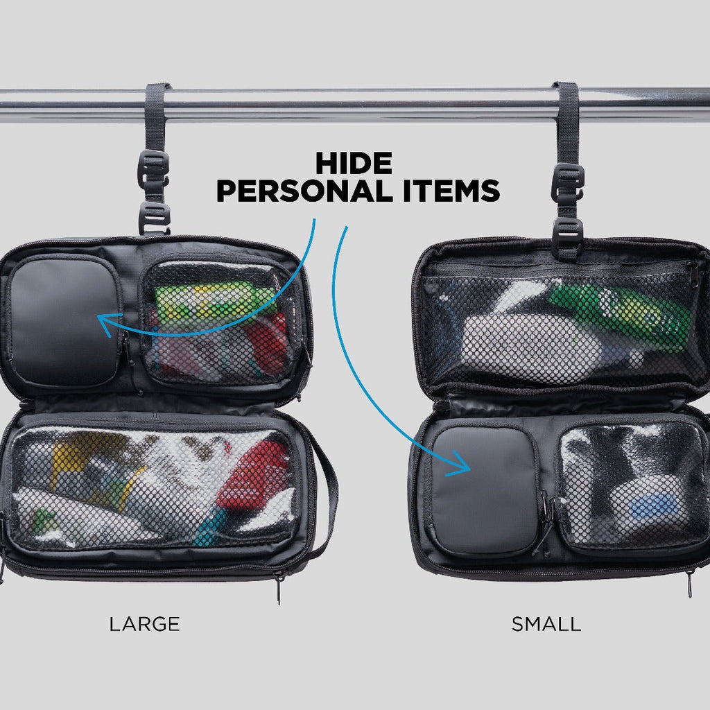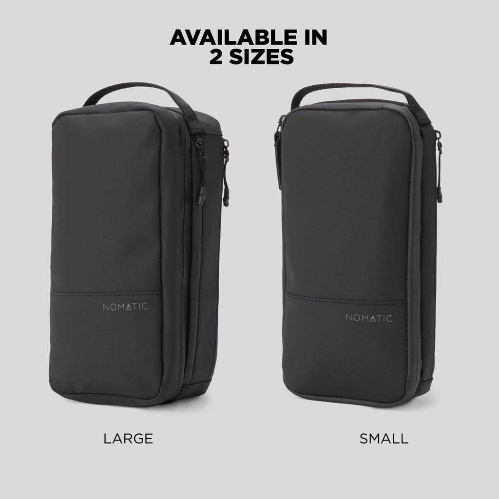 The NOMATIC Toiletry Bags come in two sizes; Pick the size that works best for you. Both are made with durable, water-resistant materials and zippers to ensure there are no leaks and your toiletries stay protected. An optional hanging strap and dedicated toothbrush pocket are a few of the many features that make these the most functional toiletry bags ever.