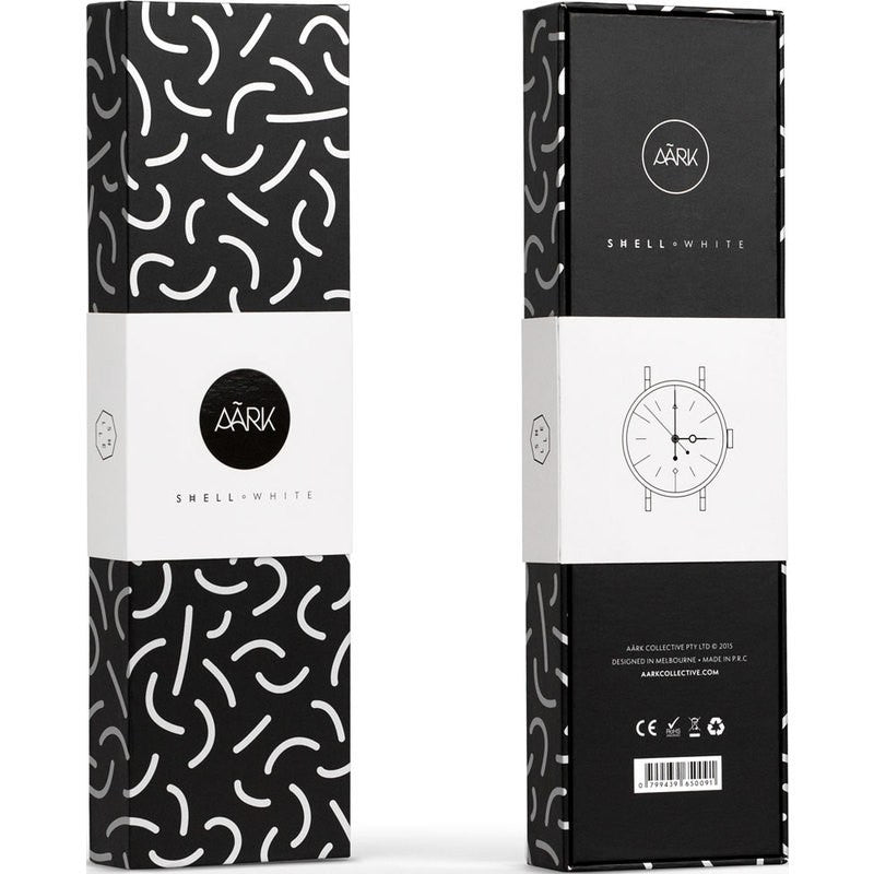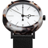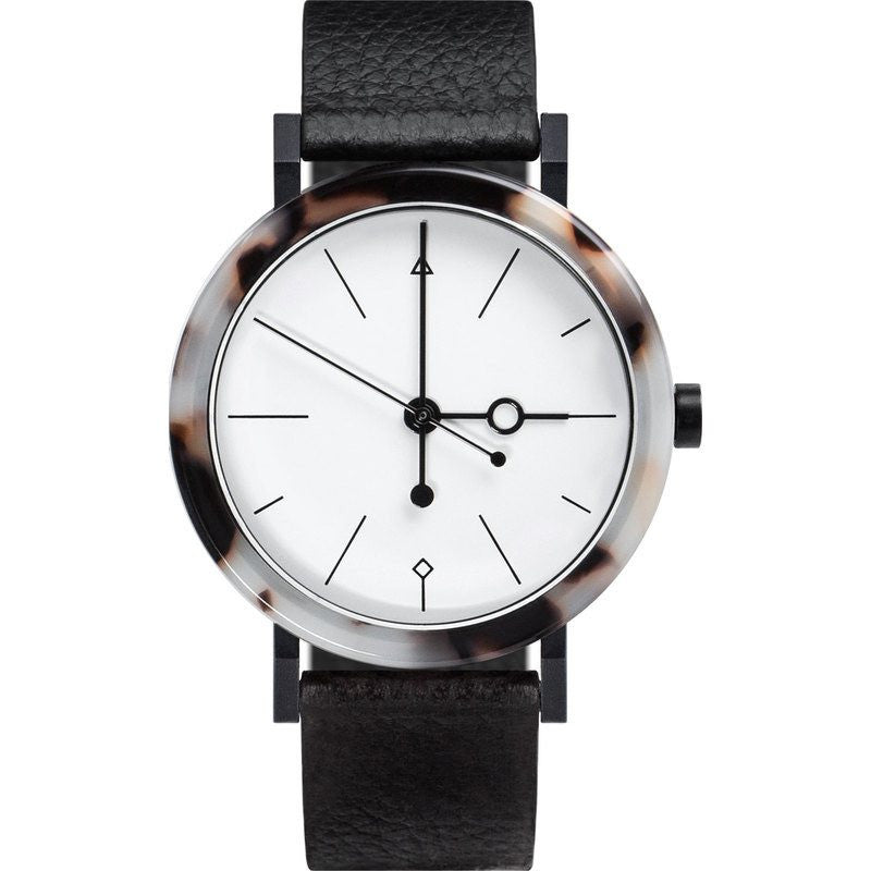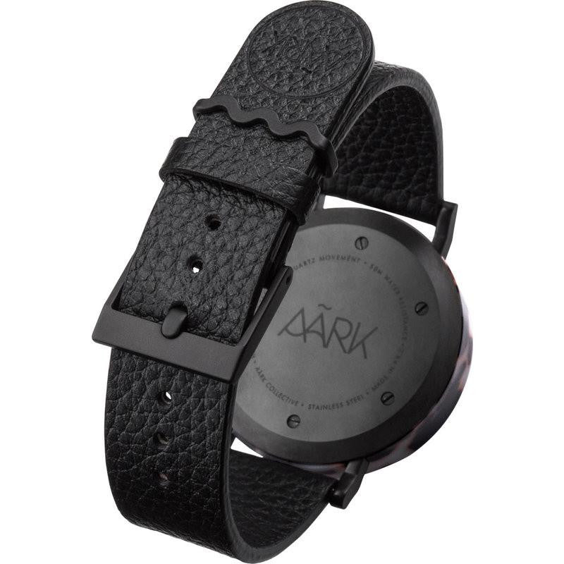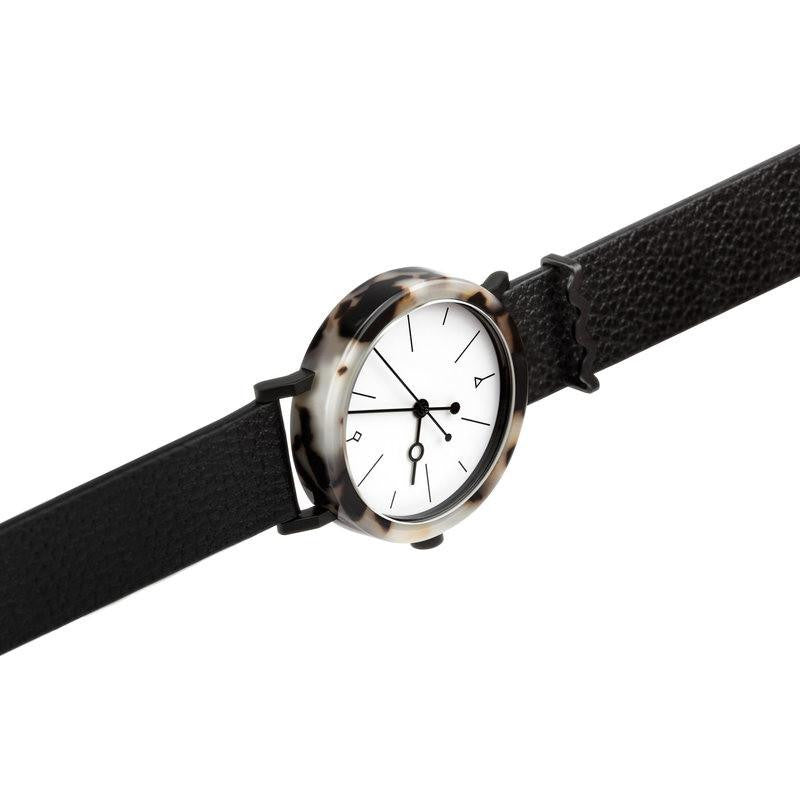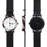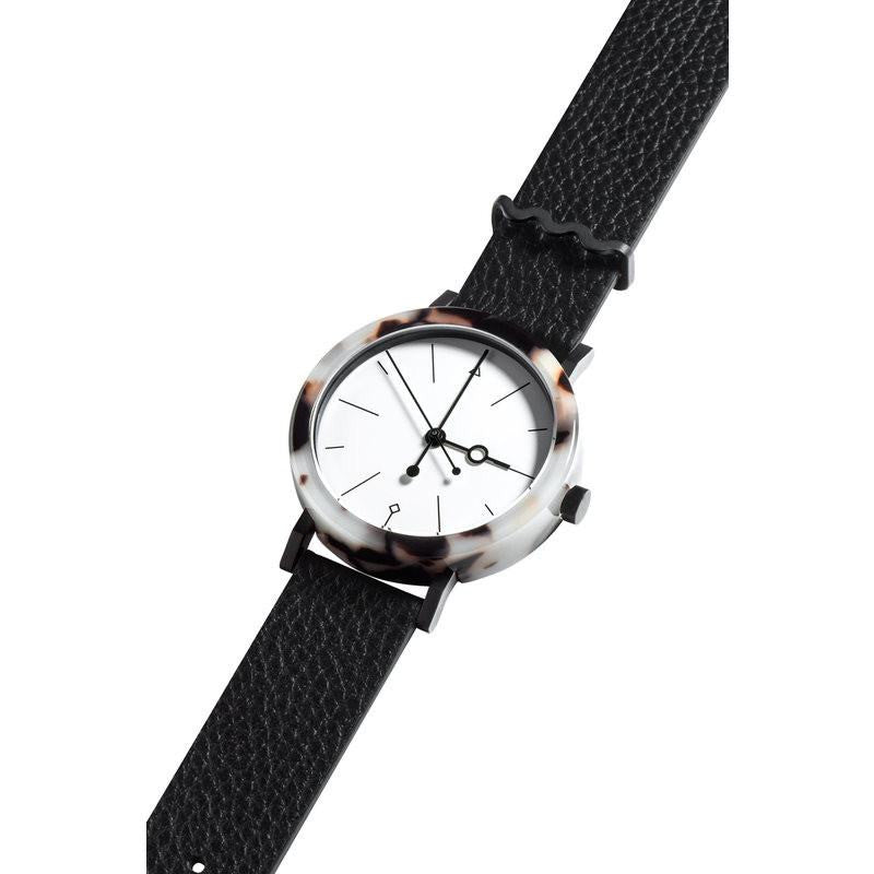 Nothing slow about this one, but it's definitely steady in style. AÃRK’s signature minimalism shines through in The White Shell Watch, a tribute to classic watch design. With unique pattering of each hand-molded acetate case, no two Shells can call themselves identical twins. Traditional design is referenced in the elongated indexes and Italian calfskin leather band, while geometric details and a wave-form steel keeper carry the graphic signature of AÃRK’s 002 collection. Driven by reliable Japanese Quartz movement, you'll never find yourself chasing time.