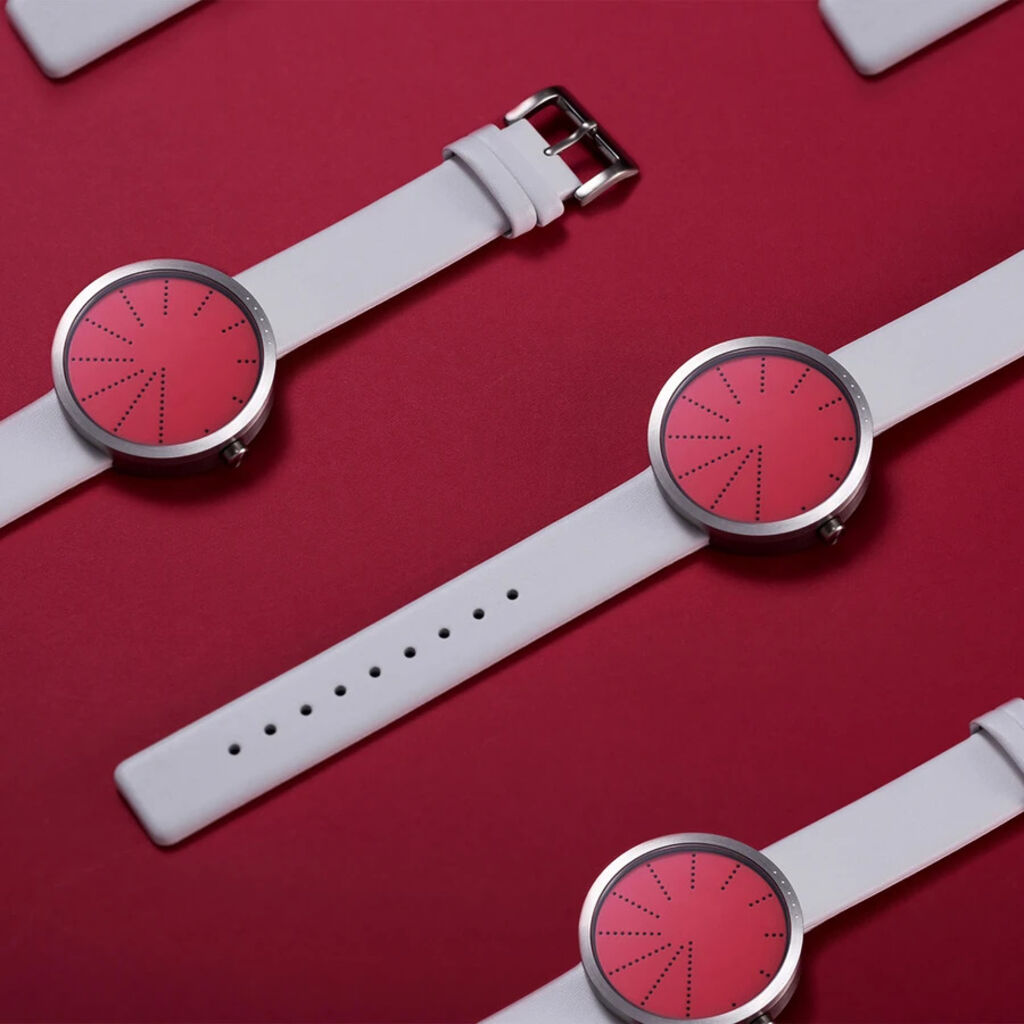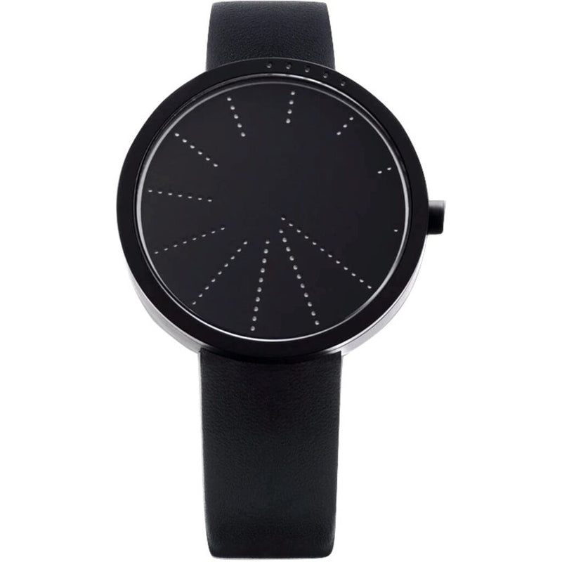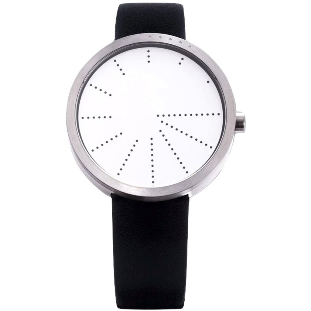 - Order has no watch hands. Instead, the entire watchface is perforated with an ascending number of dots, which rotate to align with the frame and tell the time in 15 minute intervals.