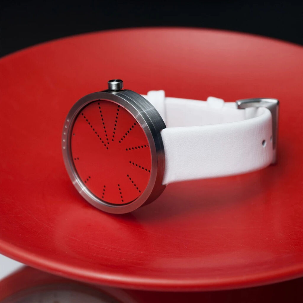 Over the next couple years, they also reissued the NASA and EPA Graphics Standards Manuals on Kickstarter—raising over $2 million combined—along with self-publishing four other titles. Following their departure from Pentagram, the duo opened the only bookstore in New York specializing in graphic design. It sits right in front of their design office, Order. Hamish and Jesse’s work with the NYCTA Graphics Standards Manual inspired their design for the watch, where they focused on representing time in a simple, graphic form. As the face rotates, the perforated dots reveal the hour indicated by an alignment with the frame. The wearer is then able to conceive time as a series of ordered dots that multiply as the day progresses, allowing for a new perception of time.