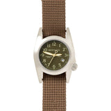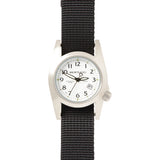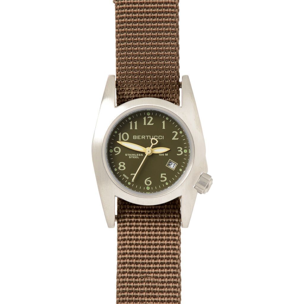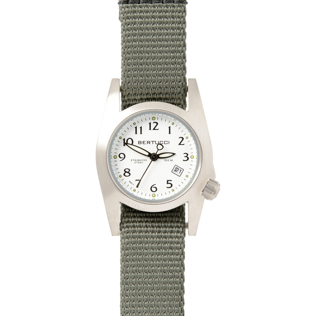 The M-1S is a QUINTESSENTIAL field watch for women with a clean, classic design. The M-1S women's field watch has a 30mm brushed stainless steel case and it is powered by an all-metal Japanese quartz movement. The M-1S offers the same performance features of every Bertucci® watch in a case size designed for women. The dial features easy-to-read high contrast numbers. The DX3® Nylon band is ultra comfortable and fits all women's wrist sizes. The hands are treated with high performance Swiss Super Luminous material that will intensely glow for hours based on exposure to sunlight or indoor lighting.