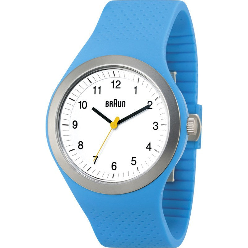This Braun Athletic Watch has quartz 3 hand movement. Its band is made of silicone for a comfortable wrist fit. With 50m of water resistance and scratch resistant mineral glass, this baby blue athletic watch is ready for your active lifestyle.