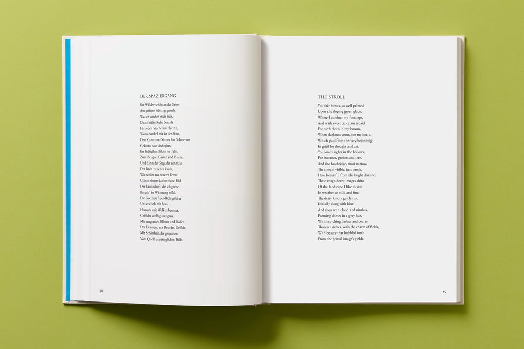 For this book André Butzer has chosen 47 poems by Friedrich Hölderlin on the four seasons and created 40 accompanying watercolors. In unison words and images ponder man’s dwelling upon this earth, in the humblest and most poetic way. This precious edition presents the poems in German and English, many translated for the first time by Alta L. Price.