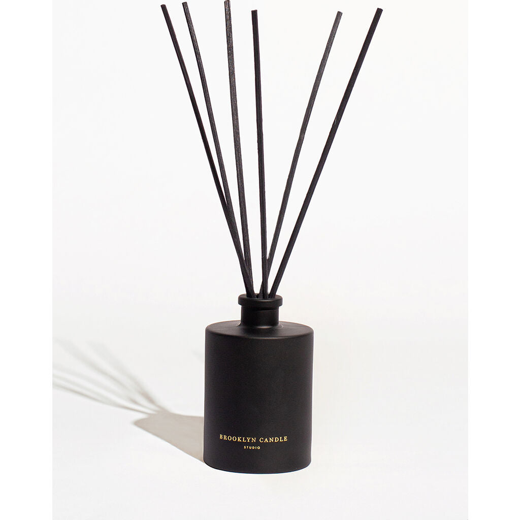 Perfume any room with our new ultra-chic reed diffusers for a delightful botanical aroma without the flame. Perfect for your home office, powder room, or any space that needs that extra something something. Our custom made glass screenprinted Reed Diffuser bottles are packed in a two-piece textured paper tube. Includes wooden stopper and 8 rattan reeds. Lasts for approximately 4-5 months.
