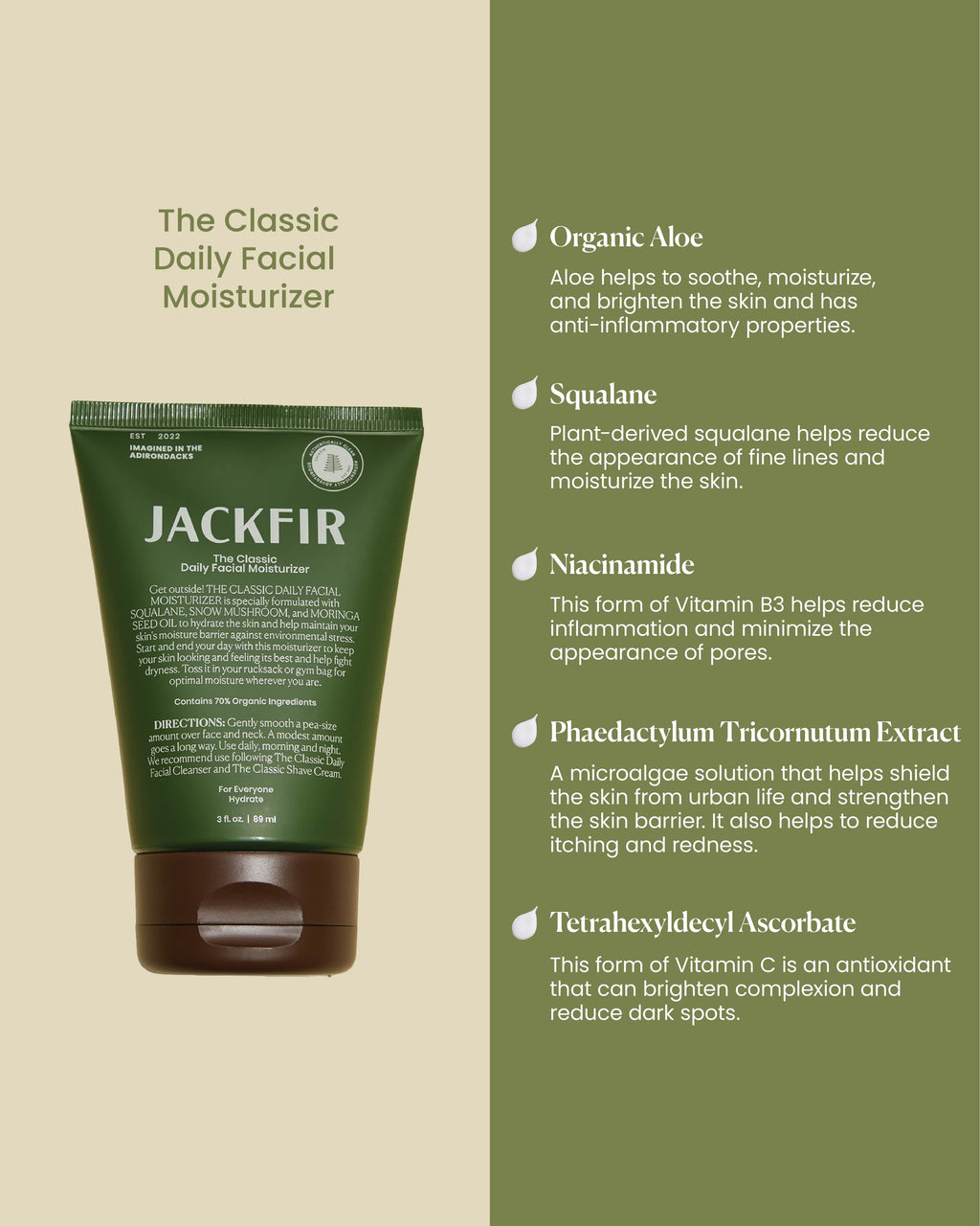 Get outside! The Classic Daily Facial Moisturizer is specially formulated with squalane, snow mushroom, and moringa seed oil to hydrate the skin and help maintain your skin’s moisture barrier against environmental stress. Start and end your day with this moisturizer to keep your skin looking and feeling its best and help fight dryness. Toss it in your rucksack or gym bag for optimal moisture wherever you are.