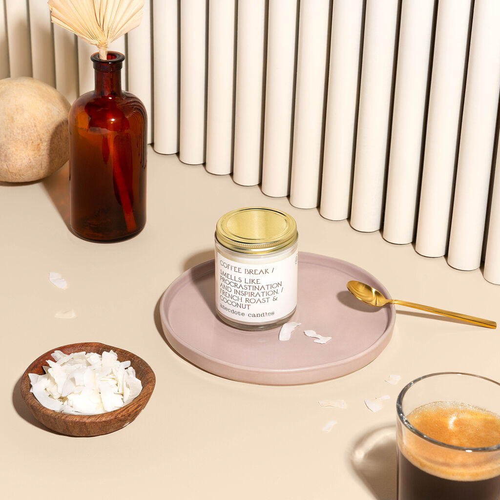 Whether you need an excuse to daydream or a reason to focus, Coffee Break is here to help. A rich blend of french roast, coconut, and shea creates space for complexity and deep thoughts, while notes of vanilla, sugar cane, and candied praline add a touch of sweetness for an extra boost.