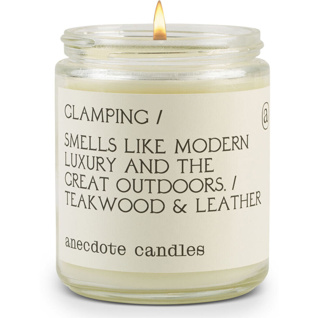 Anecdote Candles presents a unique Glamping Glass Jar Candle that calms and relaxes your mind while leaving your home feeling refreshed for a long time. It is hand-poured, cruelty-free, and Phthalate-free. It does not contain additives and has preservative-free materials. It has blended coconut-soy wax and cotton core wicks. It smells like modern luxury and the great outdoors. The main fragrances are teak wood and leather. The top notes are leather, tobacco, and amber. The base notes are a spicy mixture of black tea and pepper layered above an aged teak wood base. Its burning time is approx. 40 to 50 hours. Perfect for indoor use only. Ideal for the kitchen, living room, and dining room. Enjoy it when entertaining guests or anytime you want to relax. The beautiful aroma refreshes your home for a long time. This will be a perfect gift idea for you. You can gift it to your mom, wife, sister, friends, and loved ones. The beautiful packaging will leave a lasting impression and provide an unforgettable experience.