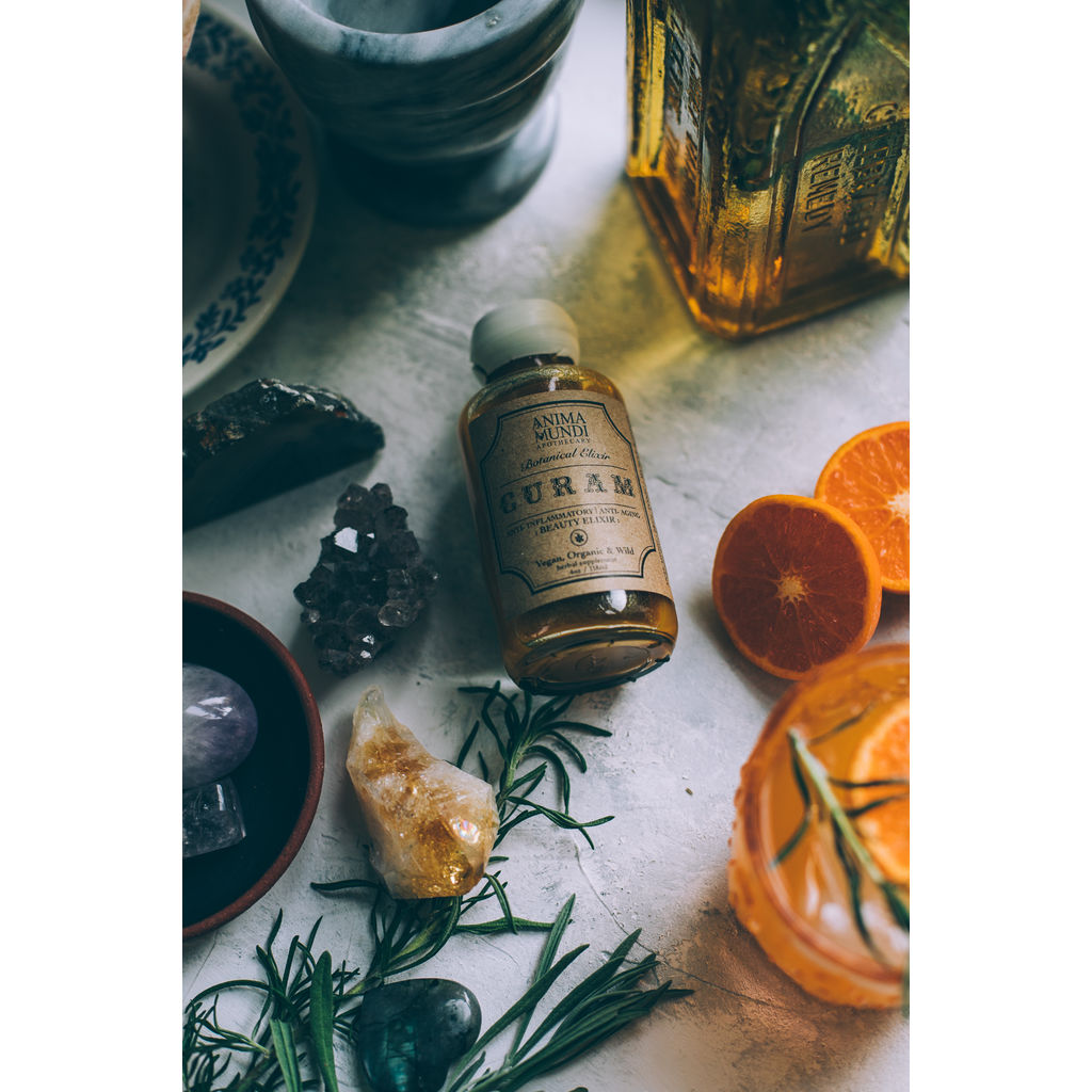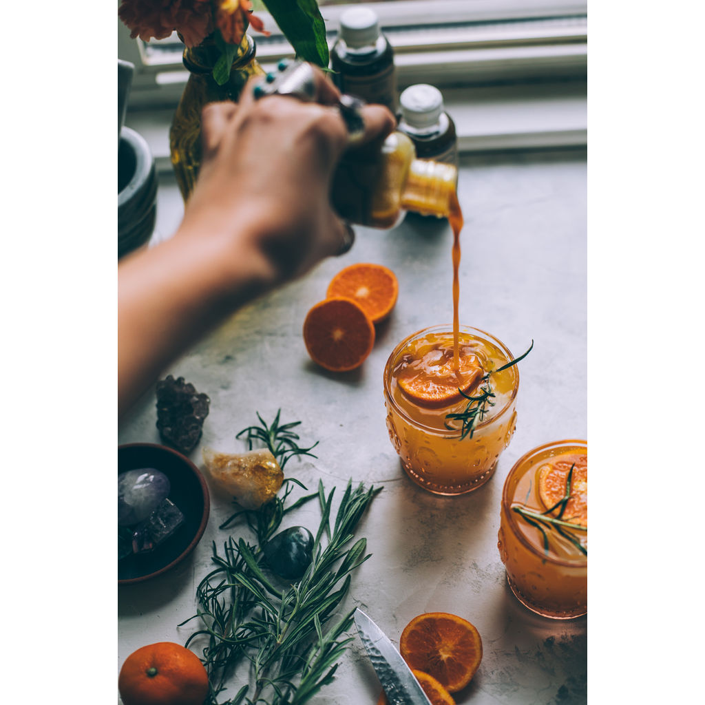 Ingredients: Turmeric Root*, Camu Camu peel*, Amla peel*, Mangosteen peel, Tulsi leaf*, Fresh Orange peel*, Ginger Root*, Black Pepper*, Ylang Ylang flowers^, extracted in vegetable glycerin and filtered water.