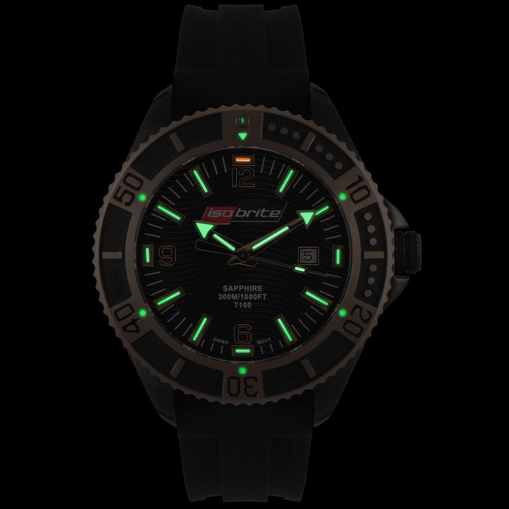 The Isobrite ISO504 Master Diver Watch is an exemplary example of why T100 Tritium Illumination is an amazing innovation worth the investment. You try diving down to 1000 feet and see if you can read your watch. Visible in the lowest of light conditions without a battery, and built with a Swiss construction, the Isobrite Master Diver is both elegant as a daily wear, and a life saver at the greatest depths.