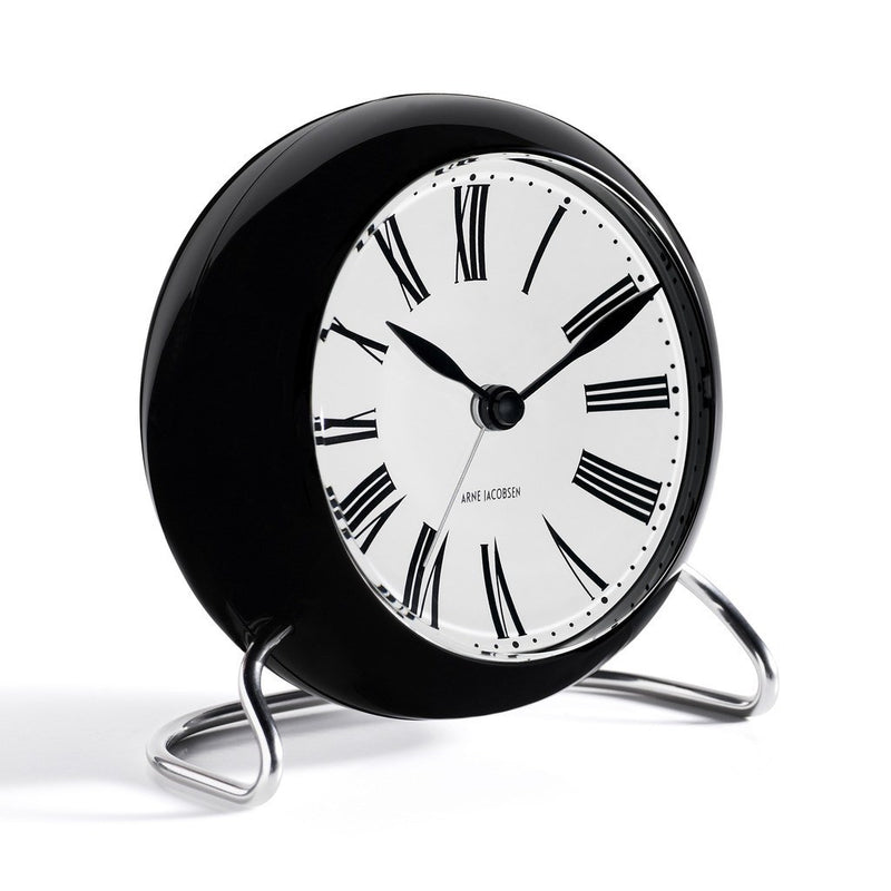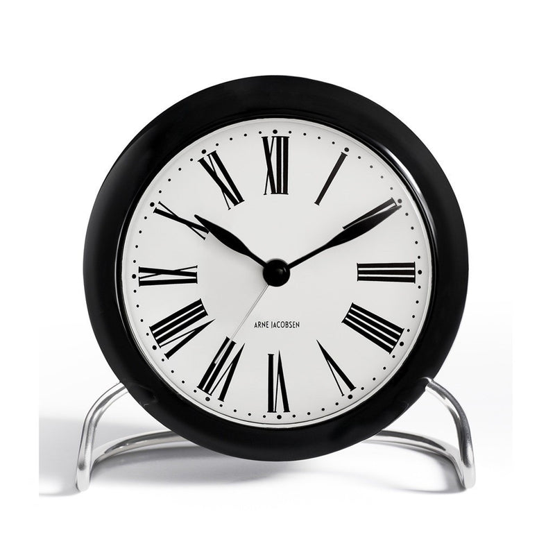 Created in 1939, the Arne Jacobsen Roman Table Alarm Clock has a unique metal base. This clock pays homage to Jacobsen's designs of the Ant and No. 7 chairs. Perfect for contemporary homes, this clock has updated features such as snooze and a light sensor.