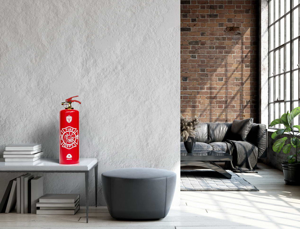 Safe-T FIRE DEPT is a fully functional Design Fire Extinguisher. One to keep in plain sight, instantly accessible in the case of a fire, while embellishing your interior.