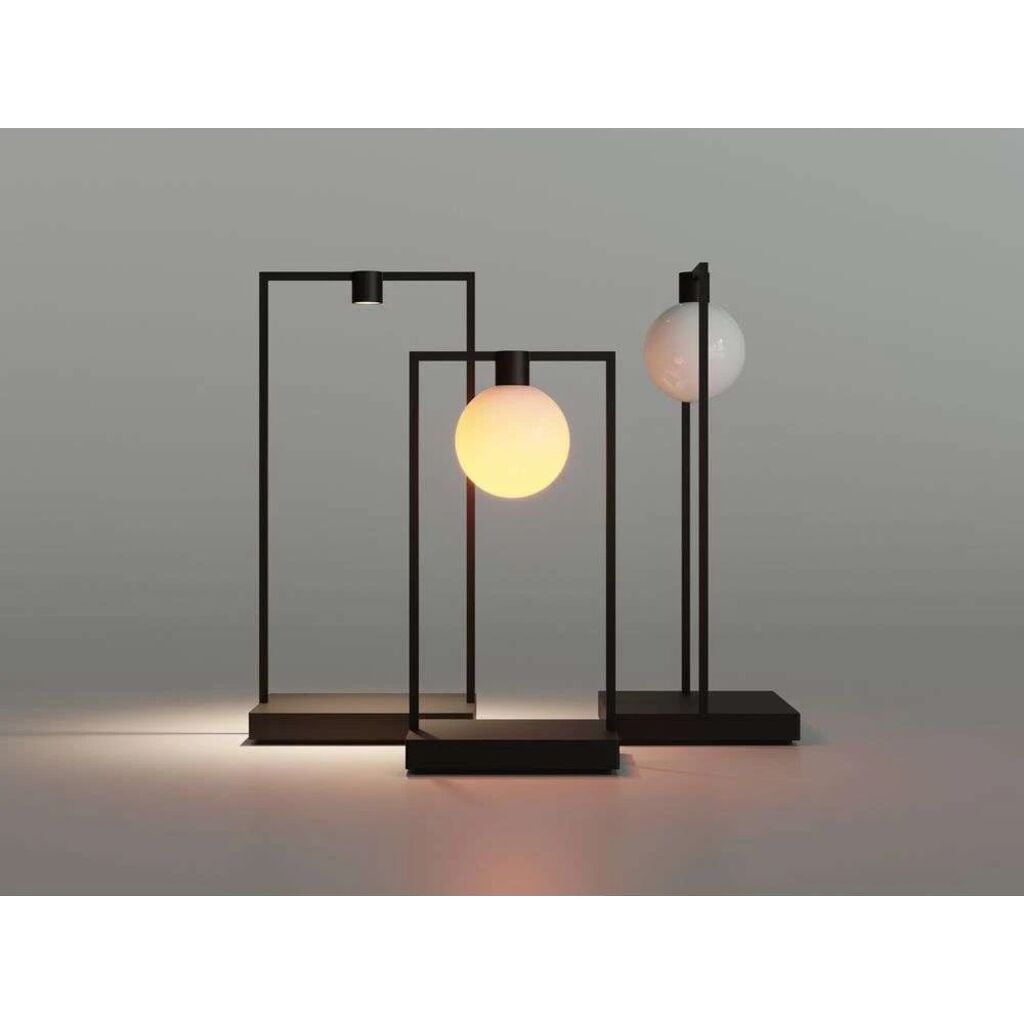 Artemide presents a unique Curiosity 45 with Focus Table Lamp that offers an elegant look to your reading or office room or table. It is made from aluminum. The dimensions are 450 x 210 x 210 mm (HxWxL). This portable lamp has an elegantly simple design featuring a rectangular aluminum frame consisting of a thick base and narrow rods. A sphere-shaped diffuser is attached at the center of the rod at the top and the lamp casts a warm, cozy light through an opal glass diffuser. With its compact size, lightweight, and 26-hour battery life, this lamp is versatile and ideal for use in homes and commercial spaces. The lamp can offer a smooth, comforting, and relaxed feeling to a house the second it is turned on. It is the perfect decor for a beautiful modern home.