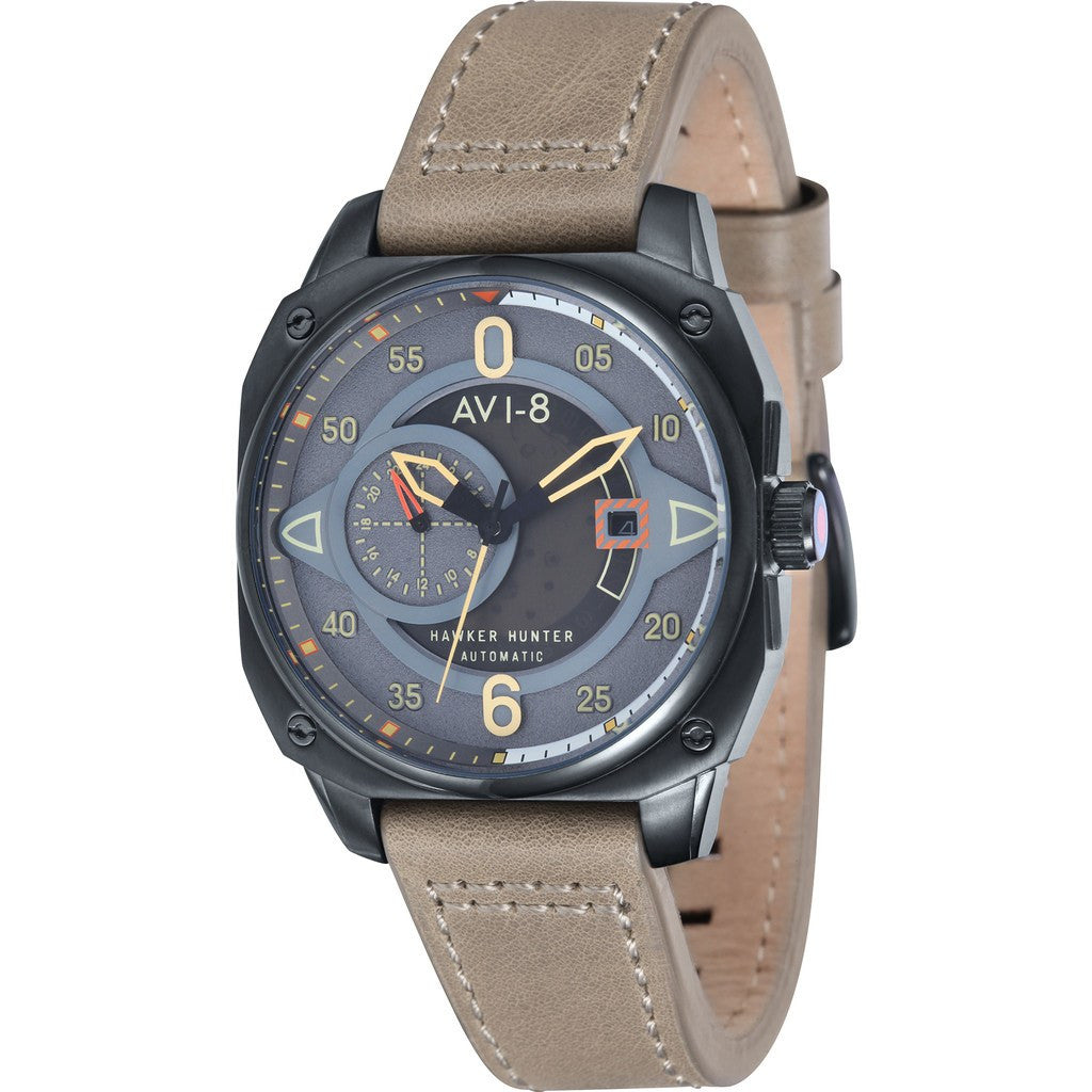 AVI-8 focuses on functionality with the Hawker Hunter AV-4043-03 Automatic Watch. AVI-8 crafted this watch with a grey dial housed in a solid stainless steel case. Finished with a Genuine Leather Strap, this timepiece is perfect for any occasion. AVI-8 makes sure you'll always be on time with precise Japanese Automatic movement.