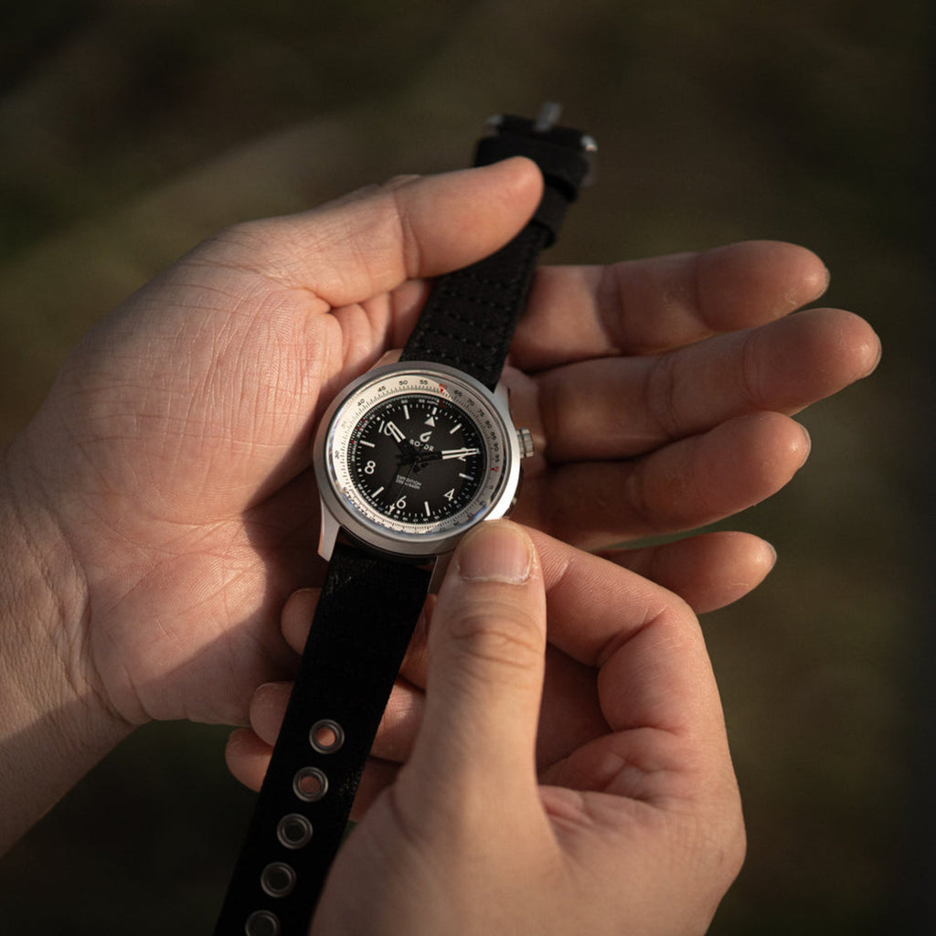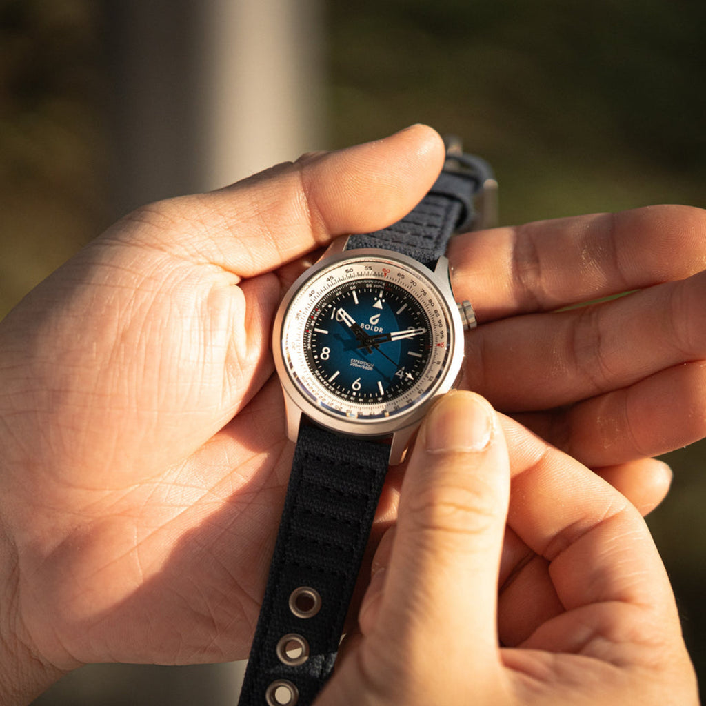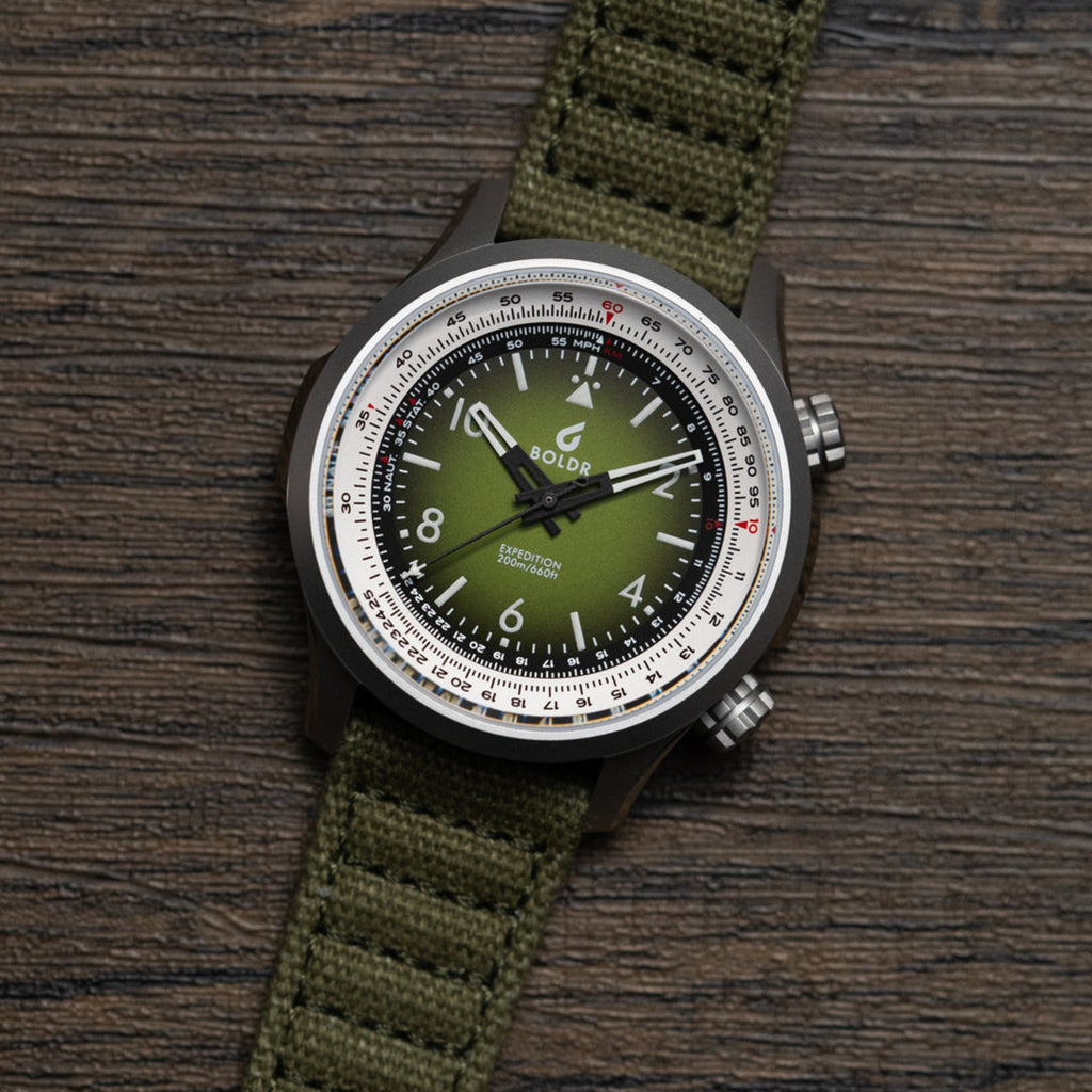 - Crown: Dual screw-down crown with custom embossed BOLDR logo