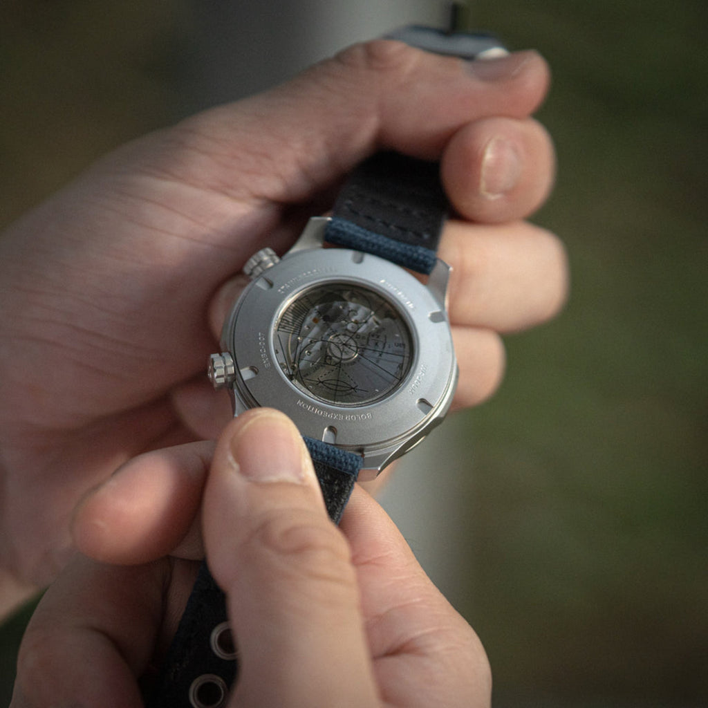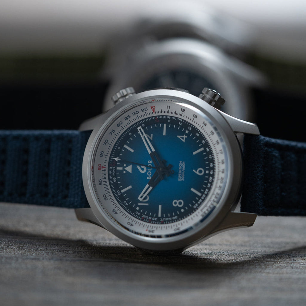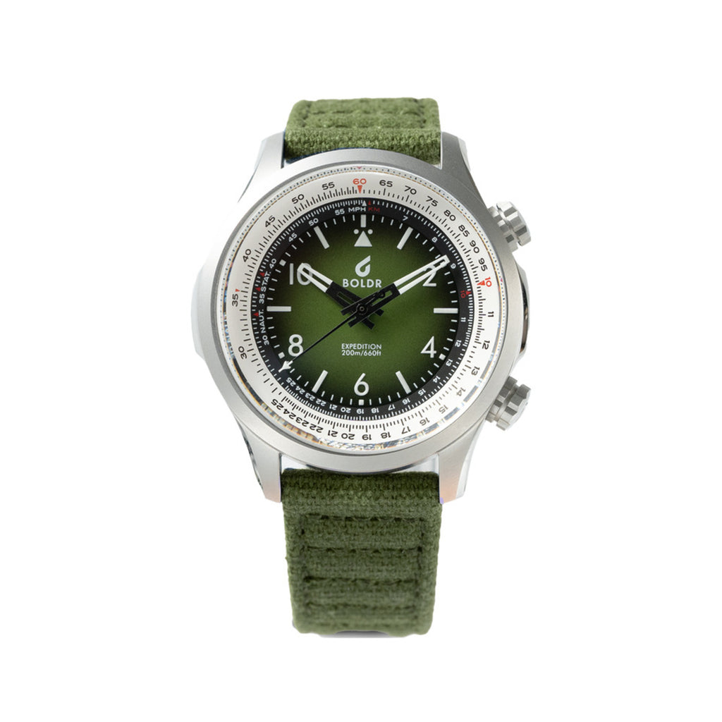 - Crown: Dual screw-down crown with custom embossed BOLDR logo