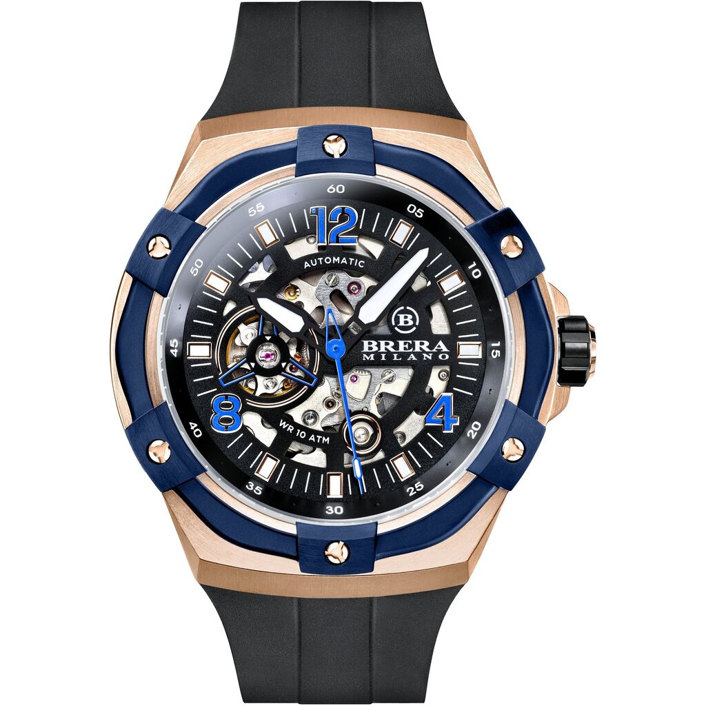 Brera Milano Supersportivo Evo Automatic Watch | Brushed Rose Gold/Navy Blue IP