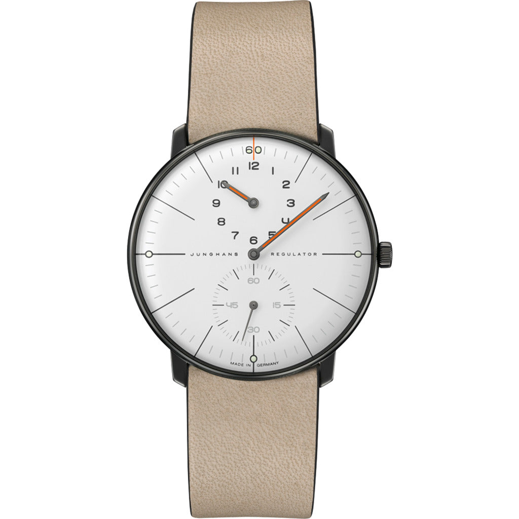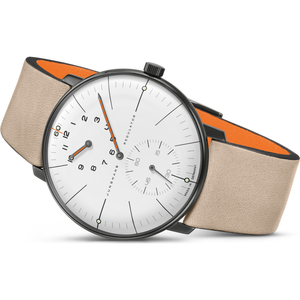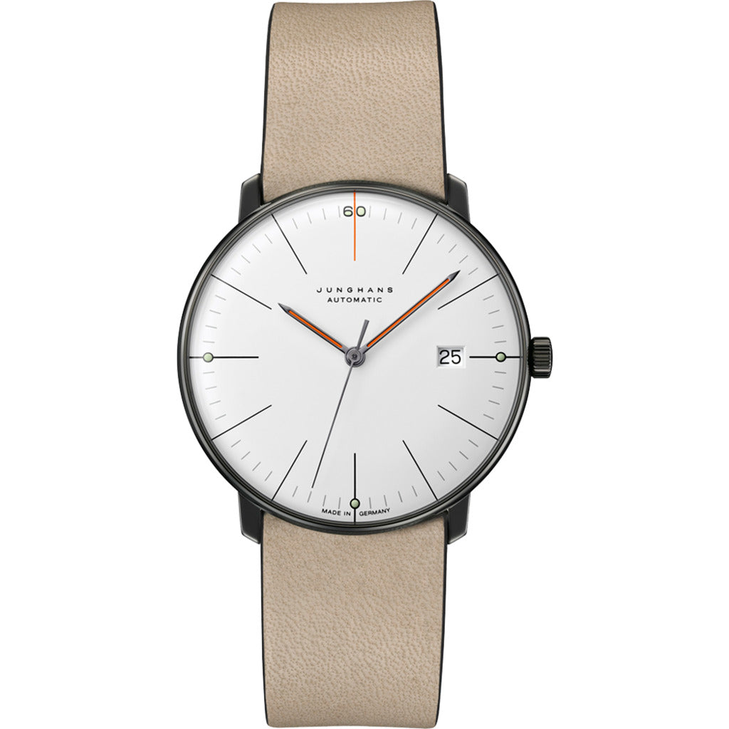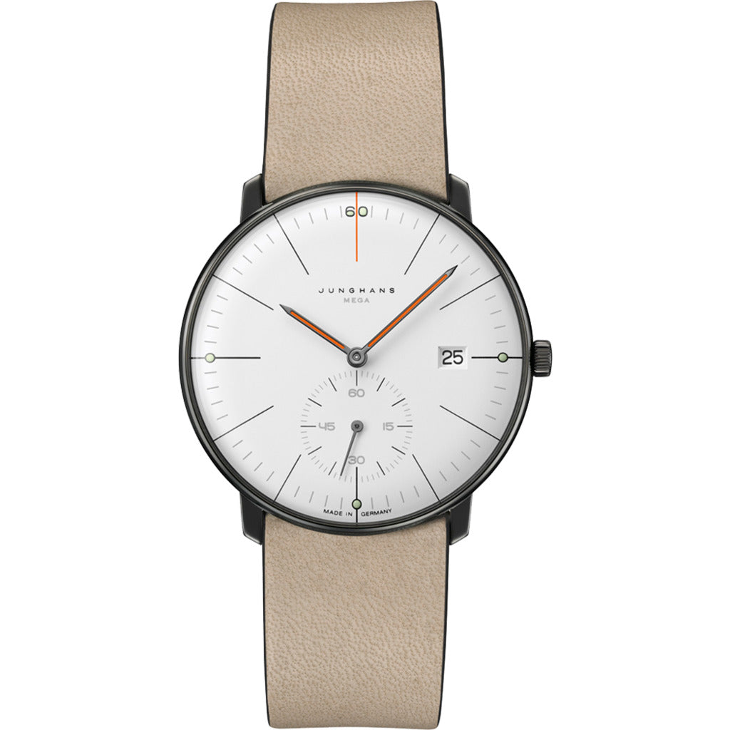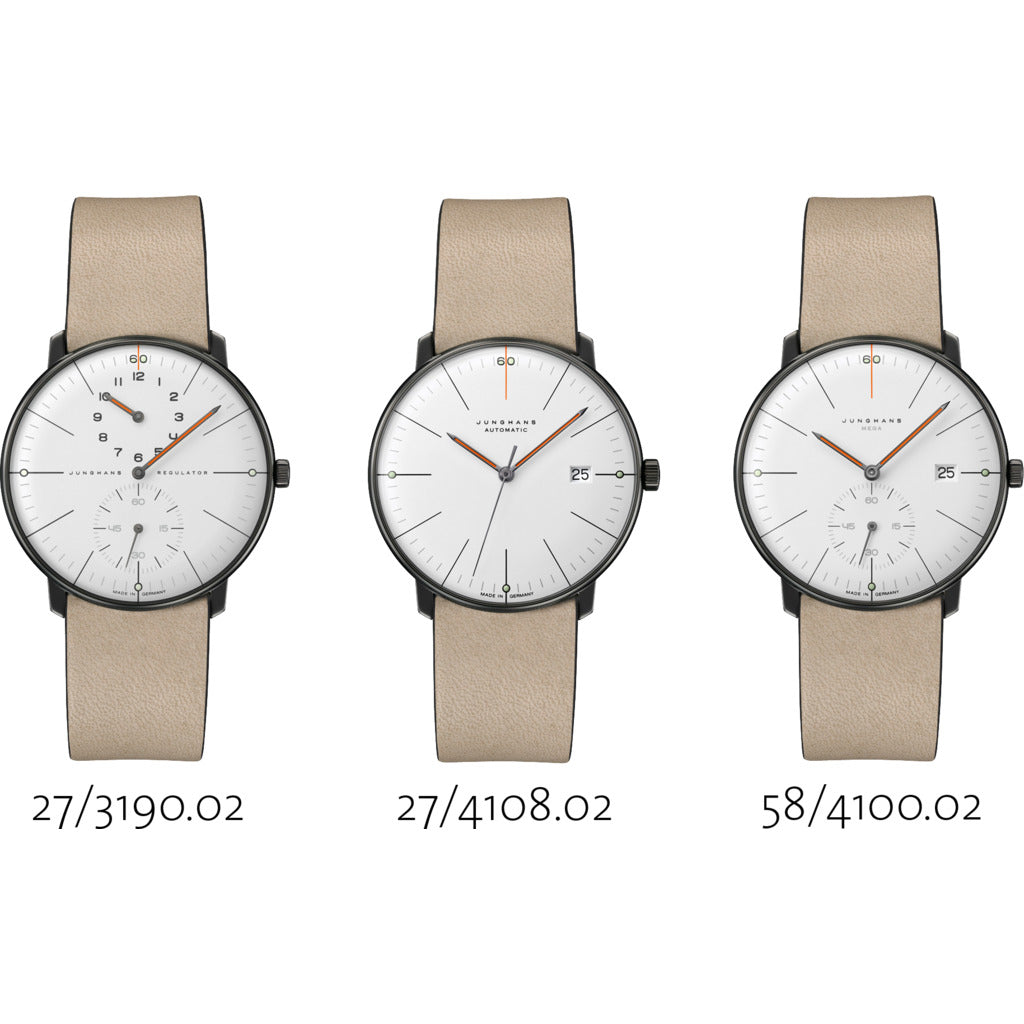 - DIAL: White matt Edition design “60 years of Max Bill on the wrist” via a "60" integrated in the minute track with green environmentally friendly luminous substance Hands anthracite coloured with orange environmentally friendly luminous substance