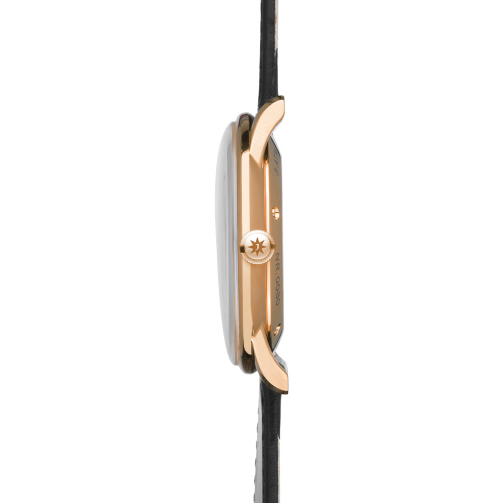 The elegant appearance and harmonious proportions of the Meister Classic are extremely captivating. A glass case back allows you to immerse yourself in the mechanical movement. Nineteen fifties style is transported into the modern era through the classic/traditional design of the watch.