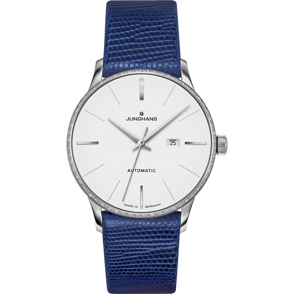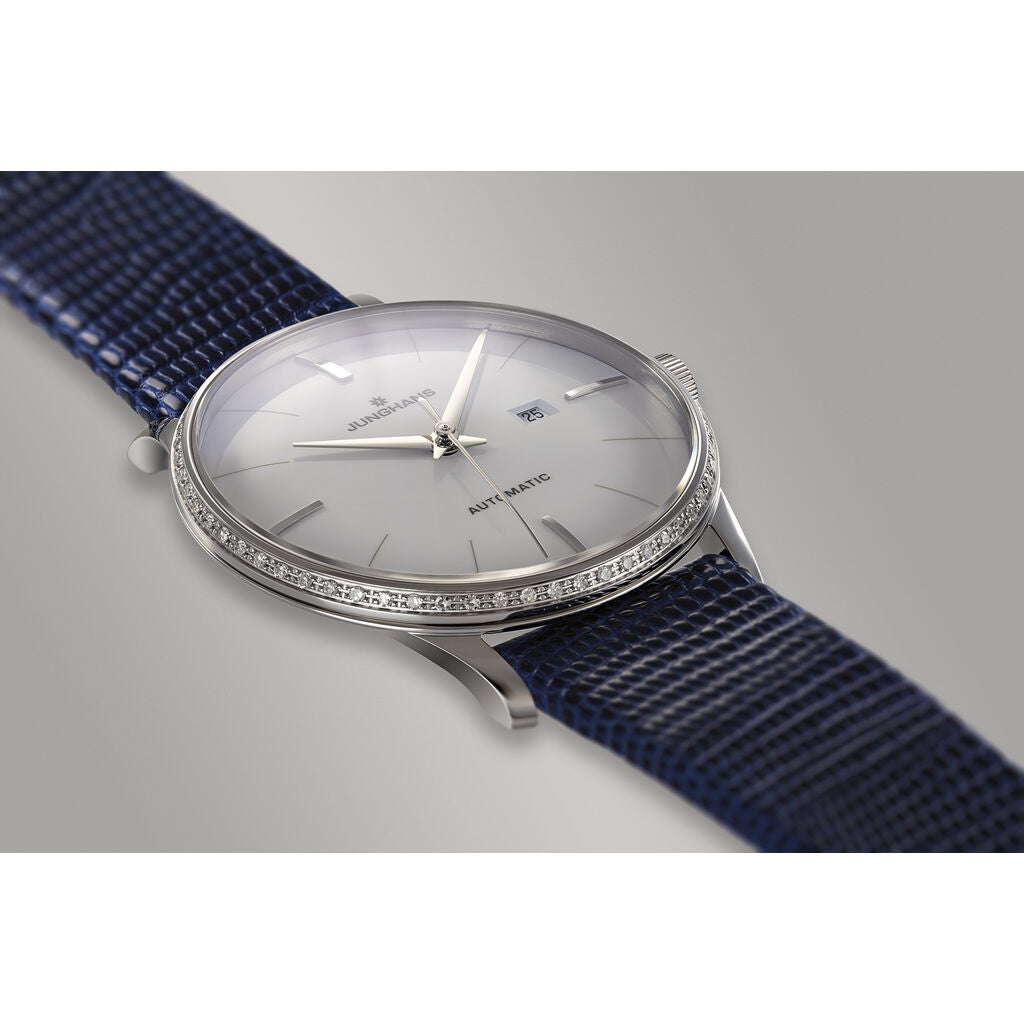 Junghans Meister Ladies Damen Automatic Watch | Blue Lizard Leather Strap 027/4846.00