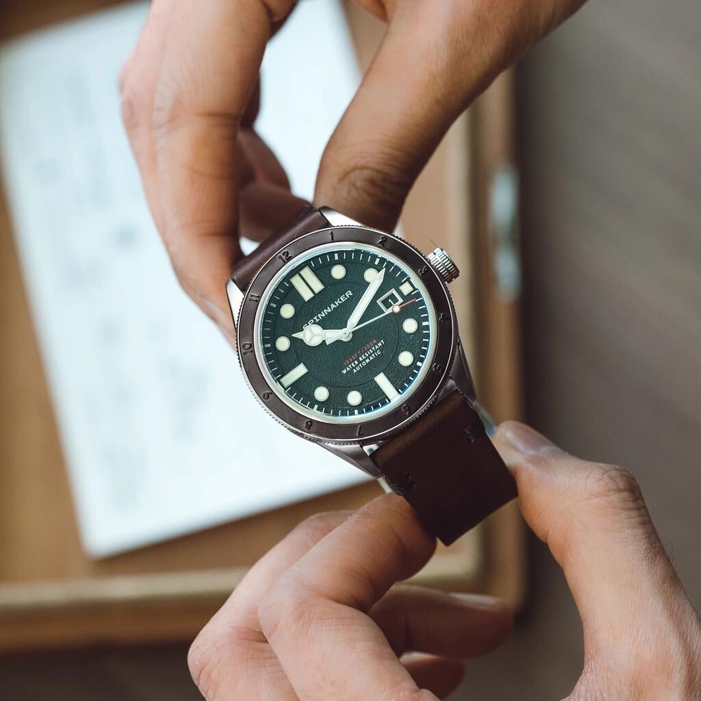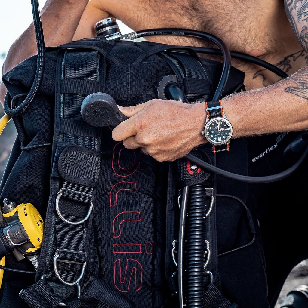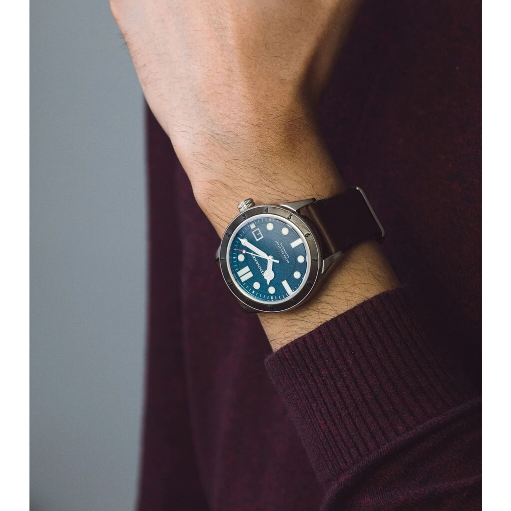 Updated to 43mm, the new Cahill is refined at every turn to make it a more useful and stylish dive watch. Clear lines and a thoughtful layout of dial elements makes the watch easy to read with a tinge of vintage styling to boot. Upgraded at every detail, this is our latest update of a classic.