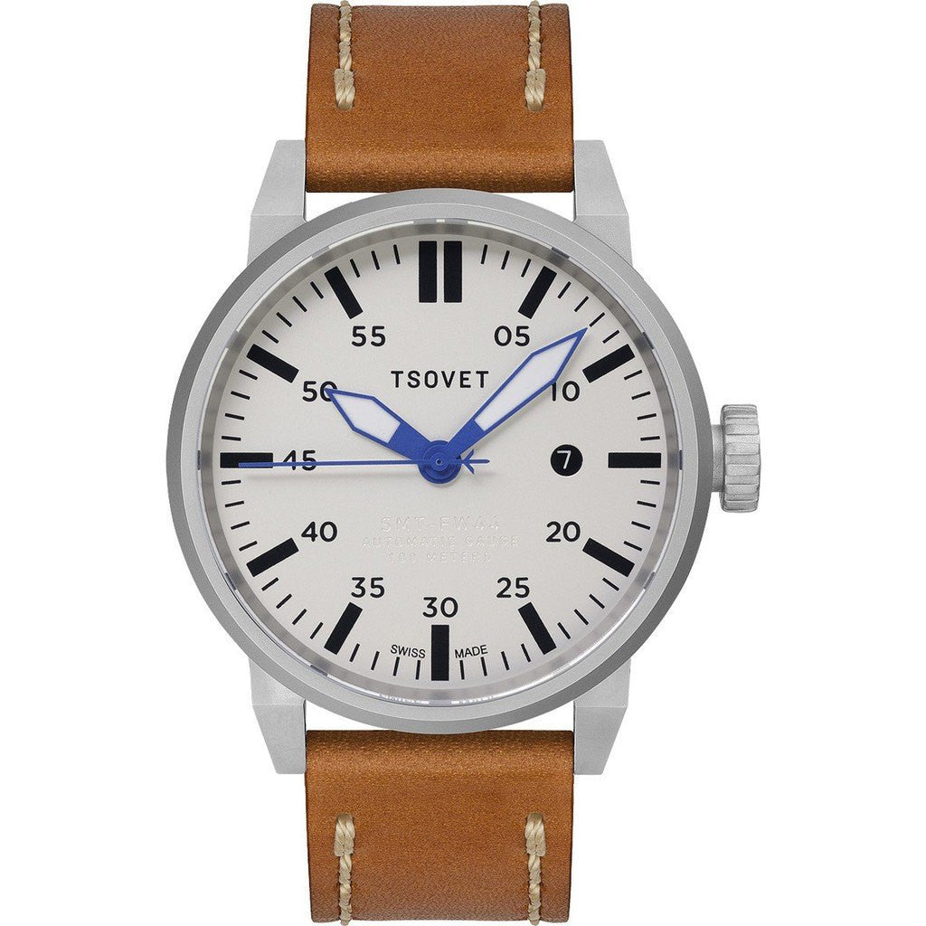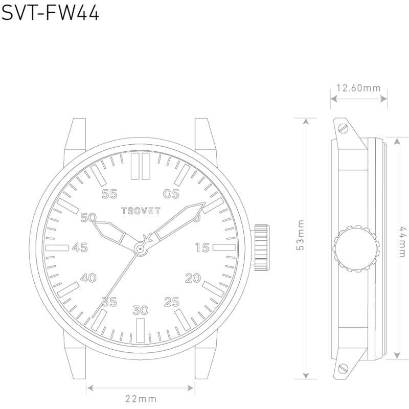 Inspired by the WWI infantryman's field watch, the 44mm Tsovet SVT-FW44 Watch answers the same call to synchronize and coordinate movement, but it does so within the business and social battlefields of today. As soldiers scrambled out of trenches of the Somme, or engaged in flanking maneuver under the darkness of the Argonne Forest, time dictated their success or failure. Today's timepiece must also offer functionality and effectiveness both signatures of this classically styled watch.