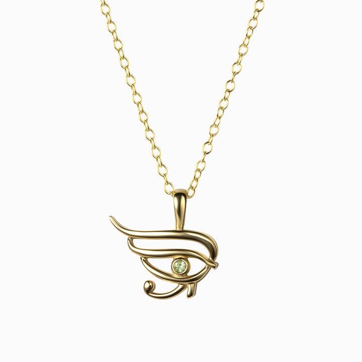 A symbol of the all-seeing third eye and an emblem of royalty, the Eye of Horus has been connected with great power since the time of ancient Egypt. The Eye of Horus Goddess Charm sparkles with a firey green peridot, a favorite of Queen Cleopatra who wore the stone for its beauty and to ward off evil spirits.