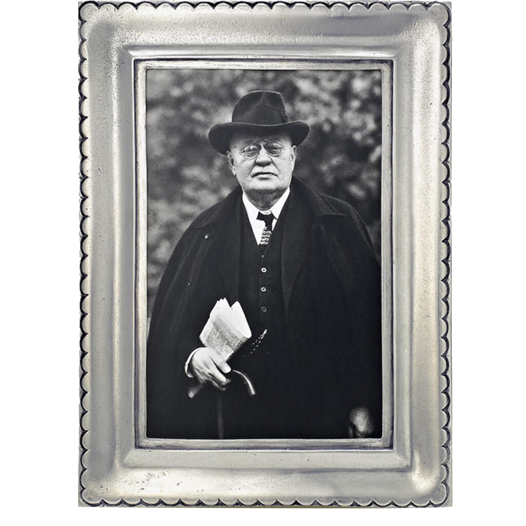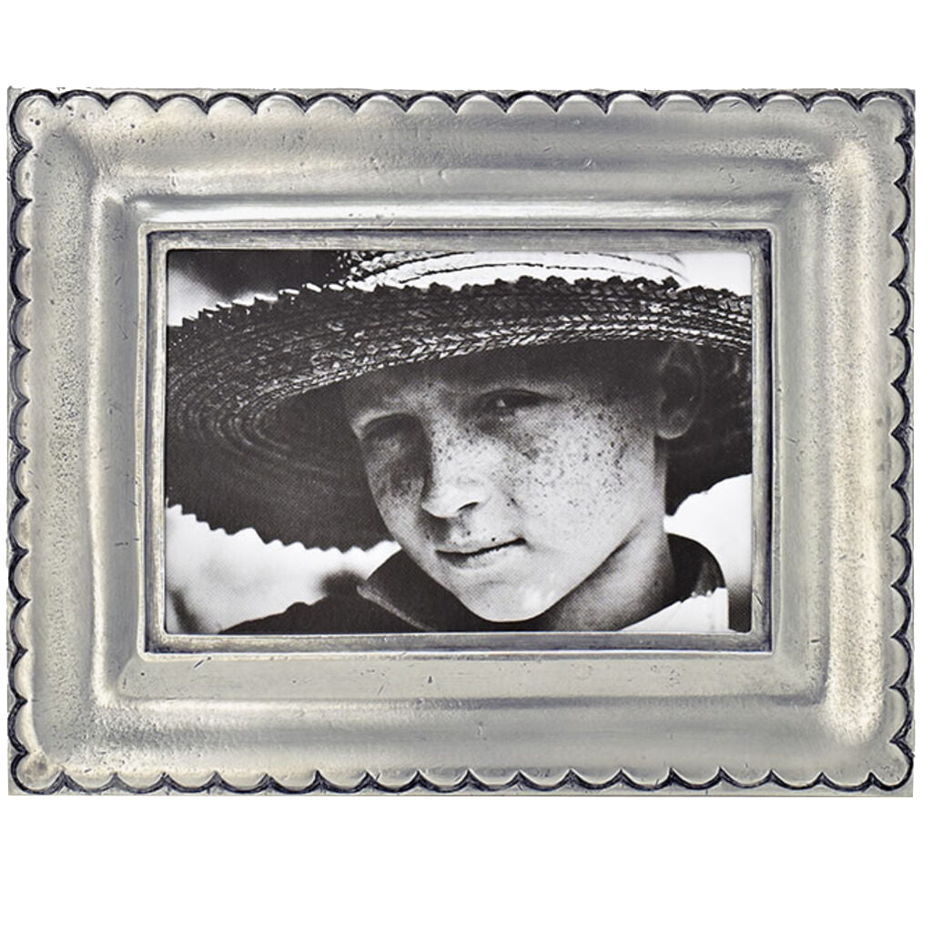 match frames are meant to enhance, not upstage, the photographs or other remembrances held within. Each collection was purposely designed to effortlessly display with the others, as we strongly encourage mixing different styles and shapes in your home or office. Each frame is stamped with hallmarks representing our workshop, our company, the tin content of our alloy and the region of Italy where our pieces are made.