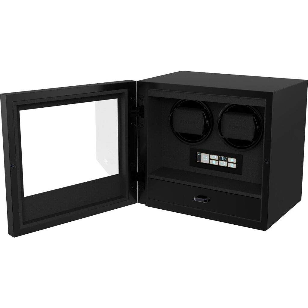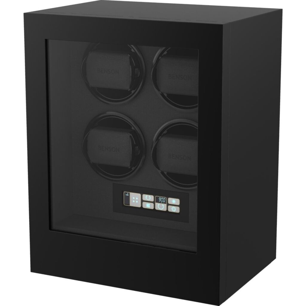 The new Benson Smart-Tech II watch winders are powerful but also durable and remain very quiet in the long term. The luminous touchscreen display allows you to set the turning direction and the desired number of turns per day for your automatic watches. With the special power winding feature you can wind your watches very quickly if needed. The LED lighting inside the watch winder provides a unique view on your automatic watches. The specially developed watch holders are suitable for big and small watches, and for gents and ladies watches (big and small wrist size) because of the unique spring system. The drawer provides extra storage space for other watches and jewellery such as rings, cuff-links, bracelets or earrings.