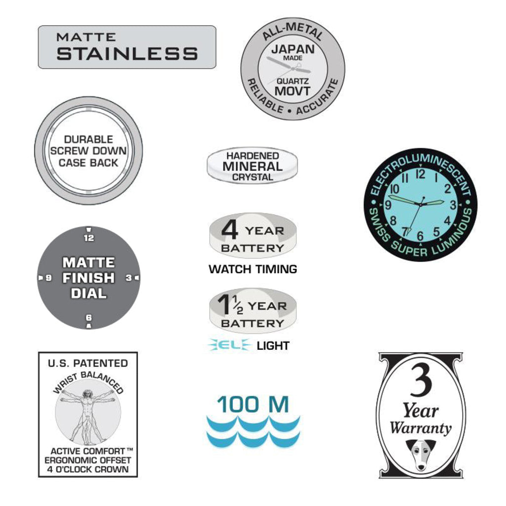 - LUMINOSITY: Push Button On-Demand Electroluminescent light will glow for 3 seconds & Swiss Super Luminous