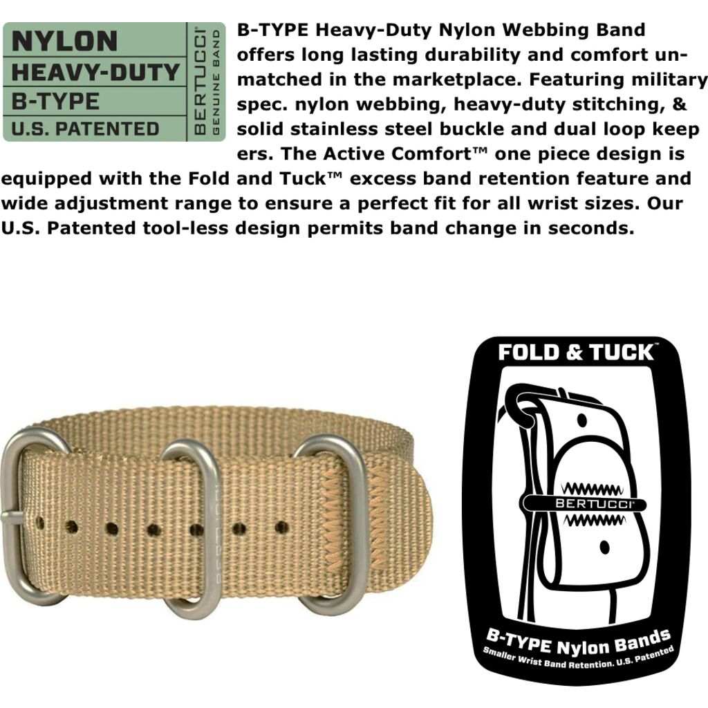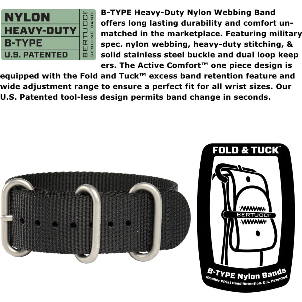 The new A-3PS features a dial that is designed to be easy to read and highly functional. It utilizes high-contrast colors to maximize legibility. The dial includes 12 hour, 24-hour and minute markings. Additionally, two 15-second quadrants are highlighted in red for quick and easy pulse taking... simply count the pulse beats while the second-hand moves through the red quadrant and multiply by 4. Equipped with a 42 mm field-proven fiber-reinforced polycarbonate case that is lightweight, highly durable, and comfortable, use our U.S. Patented Unibody™ design and is 100 water resistant rated. The hands and markers are treated with high-performance Swiss Super Luminous material that will intensely glow for hours based on exposure to sunlight or indoor lighting... not require a button push (a weak point) and will not deplete the battery or require two-hand operation. B-TYPE Heavy-Duty Nylon Webbing Band offers long-lasting durability and comfort unmatched in the marketplace. Featuring military spec. nylon webbing, heavy-duty stitching, and solid stainless steel buckle and dual loop keepers. The Active Comfort™ one-piece design is equipped with the Fold and Tuck™ excess band retention feature and wide adjustment range to ensure a perfect fit for all wrist sizes.