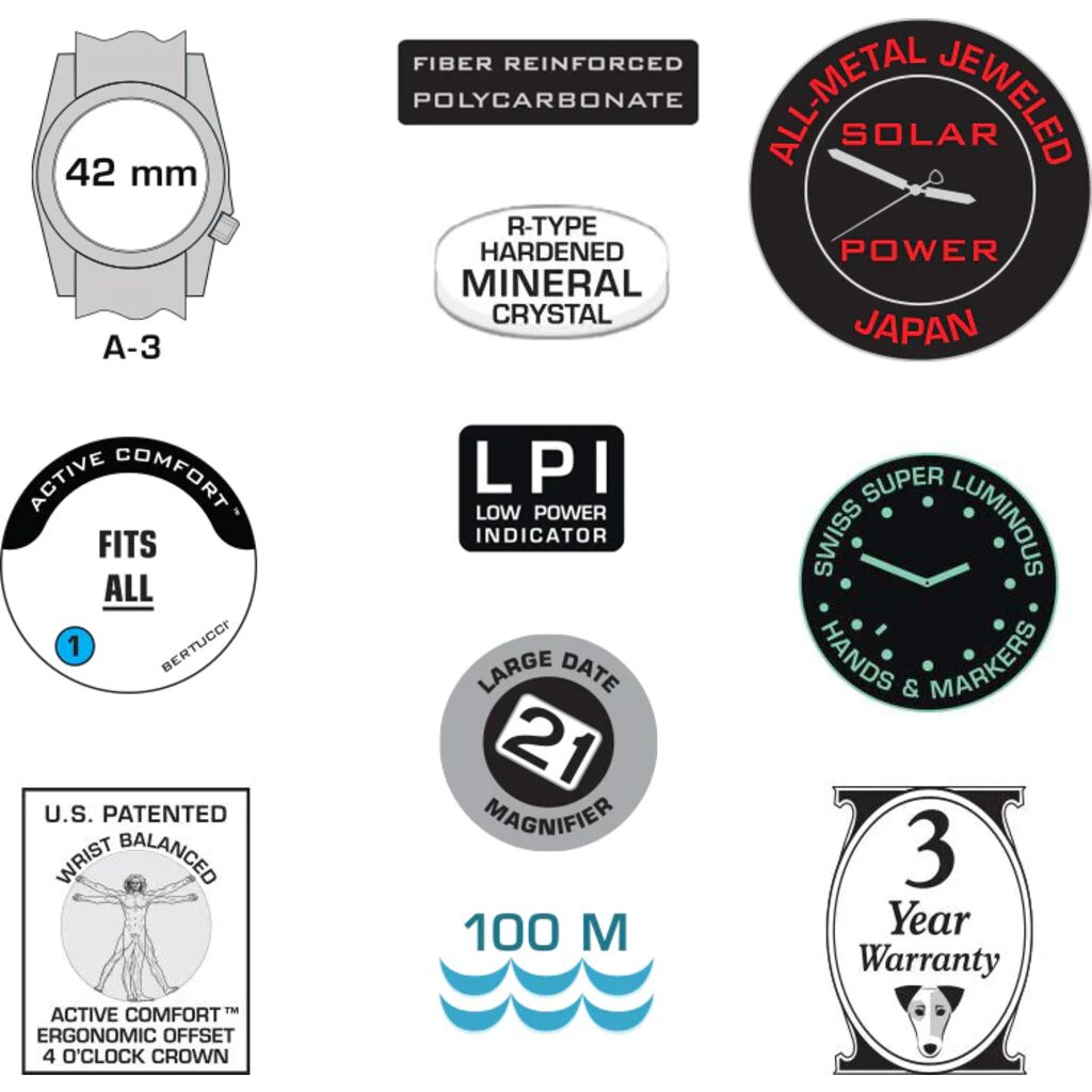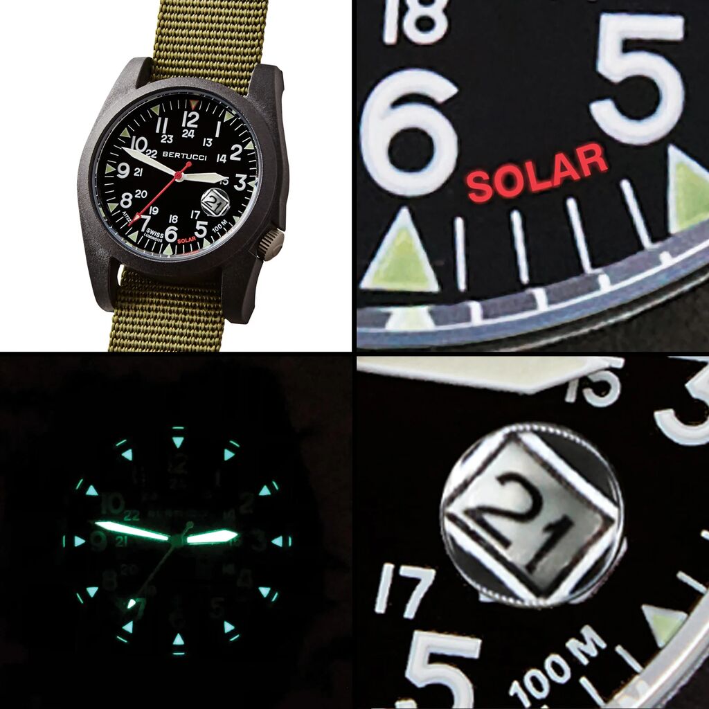 Bertucci A-3PS SOLAR FIELD Watch | Black Dial / Black Case | Nylon Band
