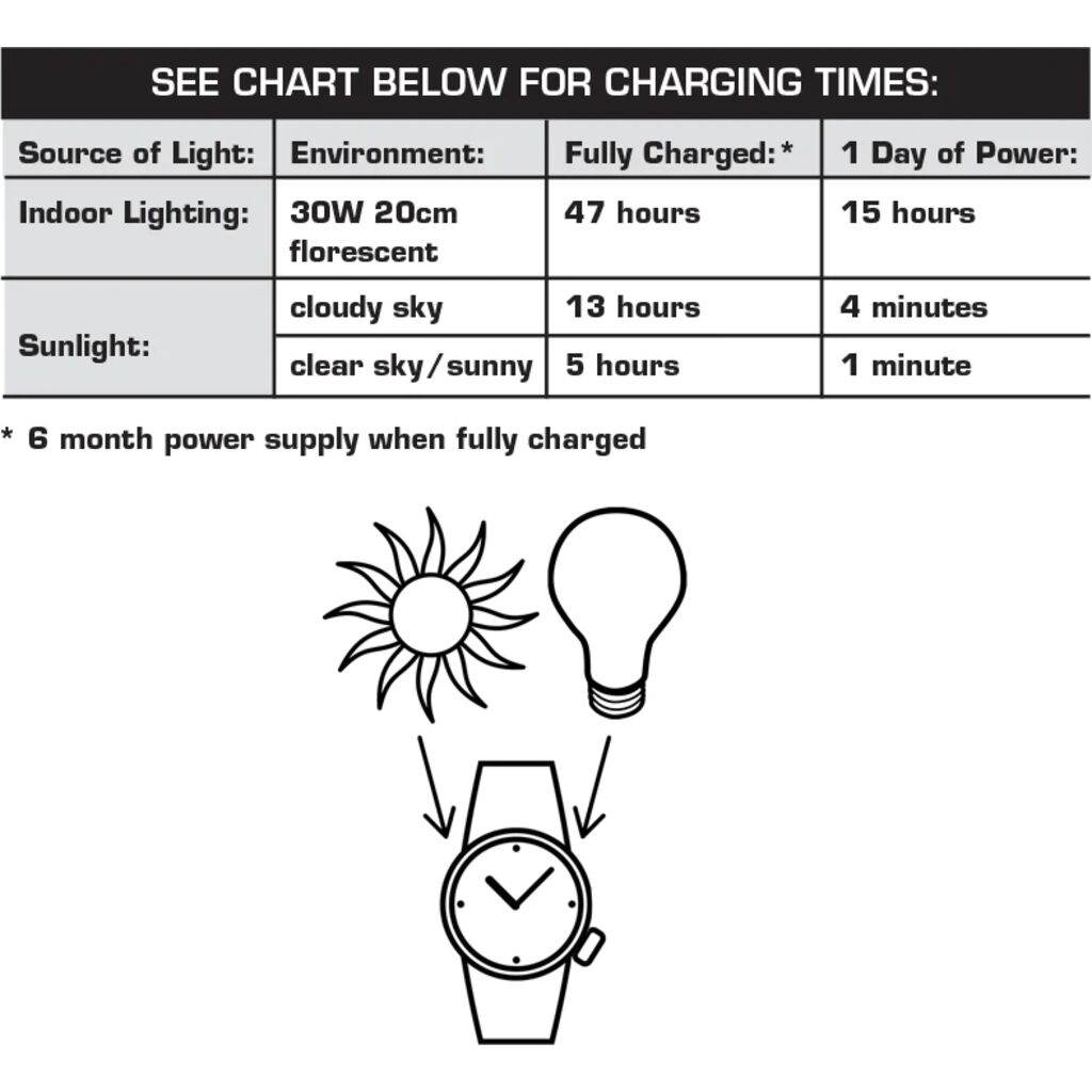 Solar Precision: Enjoy precise timekeeping with solar-powered movement and a 6-month reserve, eliminating the need for batteries.