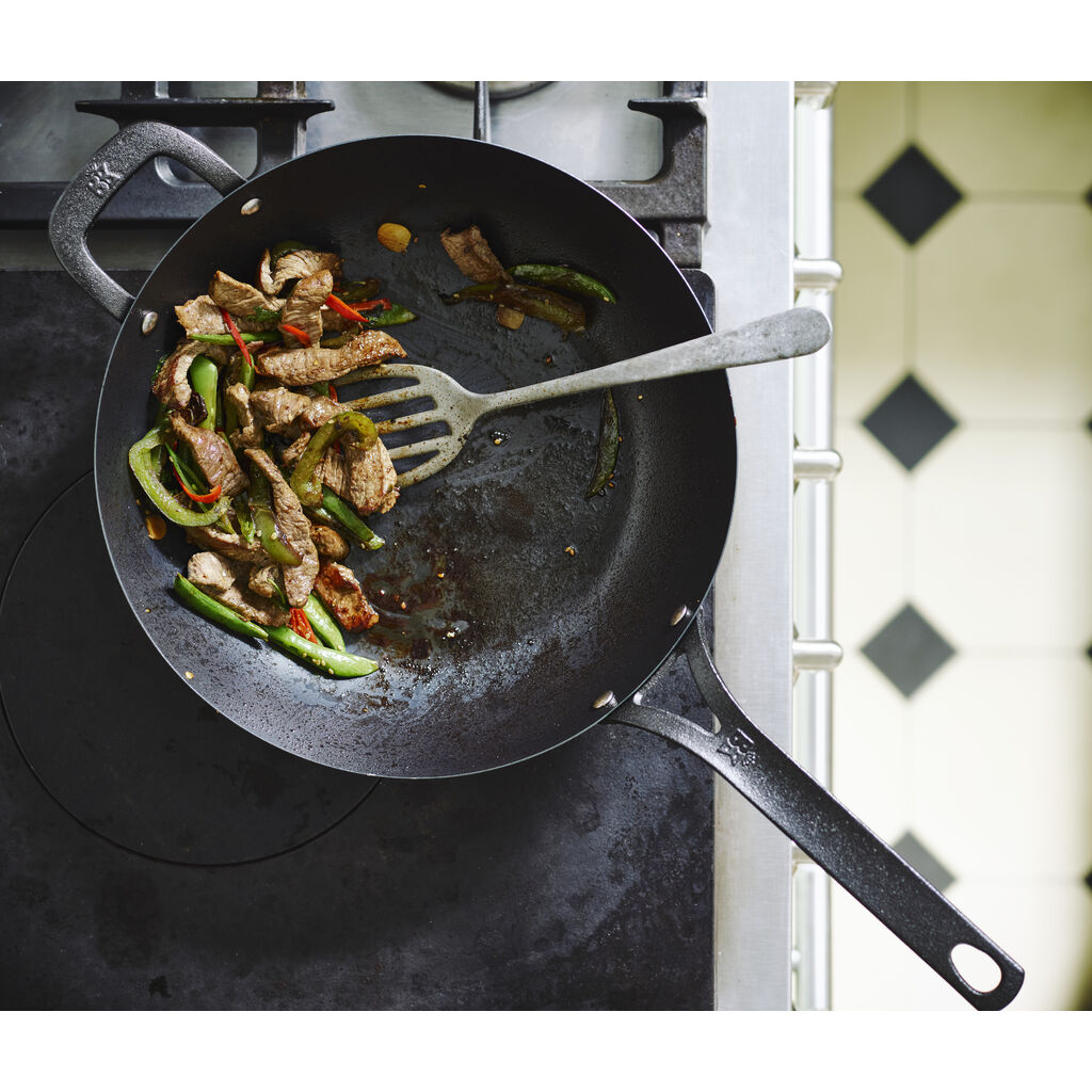 With the Wokarang we’ve reimagined the classic wok. Stir your ingredients by simply pushing your ingredients with your spatula to the bowl-shaped edge. Your ingredients will fall back into the pan—we call this the Boomerang Effect. Never stir food out of the pan again. The signature concave edge also lets you turn large pieces of fish and meat with ease.