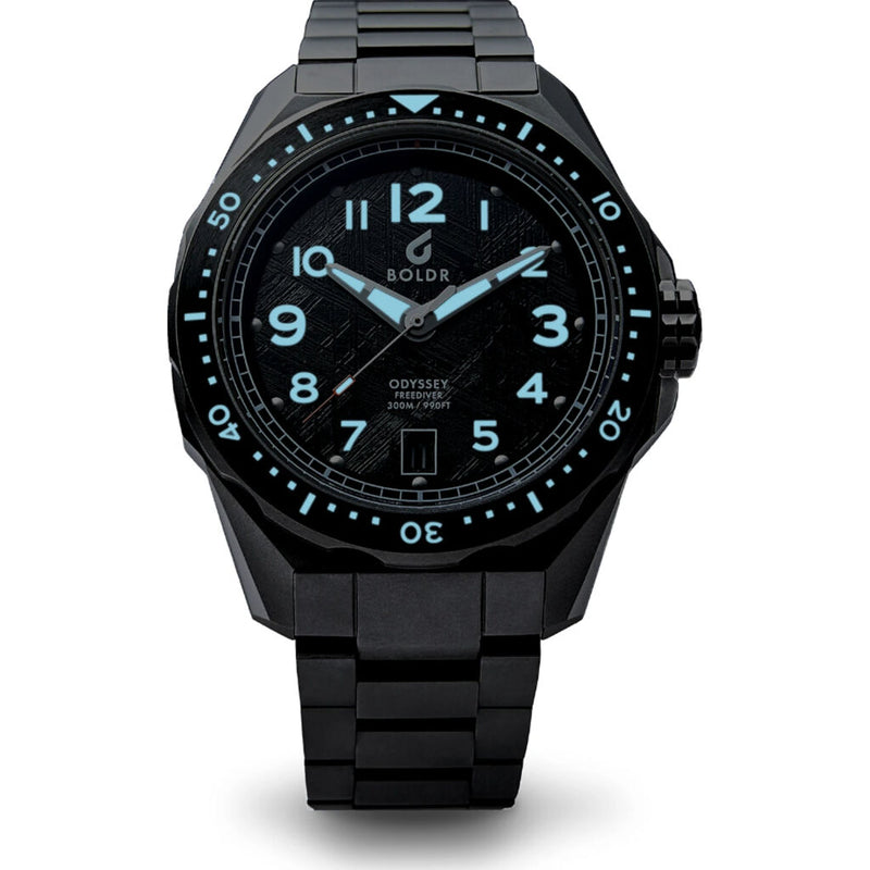 Built for freedivers and underwater adventurers, we were inspired to create this series by the sheer will and bravery of freedivers who push their bodies to the limit for the love of the sport. Perfecting the scrupulous breath-holding technique takes an ample amount of patience and perseverance - qualities that invariably seem to lead towards a BOLDR state of mind. Strap one on and channel the freediving spirit as you dive into everyday challenges.A watch of many ‘firsts,’ this is the first BOLDR timepiece to possess a full 316L metal b