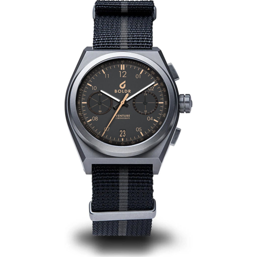 Powered by a Japanese SII VK64 Mecaquartz movement, its full titanium case and Nylon strap feel extra-snug on the wrist while delivering the quintessential field watch experience that has made the Venture a global favorite. It's the perfect companion to conquer the rough roads in style.