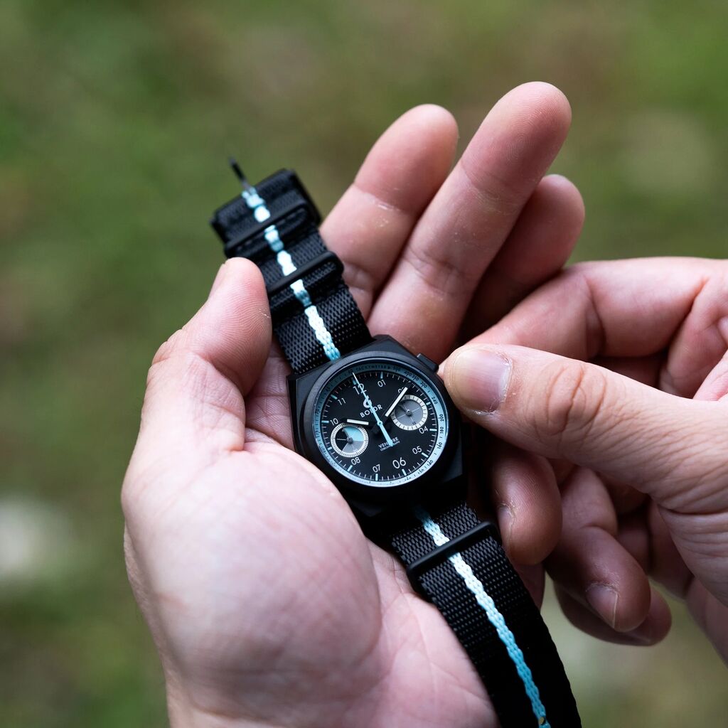 Powered by a Japanese SII VK64 mecaQuartz movement, its full titanium case and sturdy nylon strap feel extra-snug on the wrist while delivering the quintessential field watch experience that has made the Venture a global favorite. It's the perfect companion to get down & dirty on or off the race track.