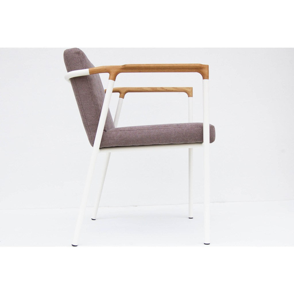 Inspired by mid century furniture styles, Bowery and Grand makes each piece with quality materials. The Madison Matte White Chair is constructed with a matte white powder coated steel base, oak wood and is finished with grey cushions.