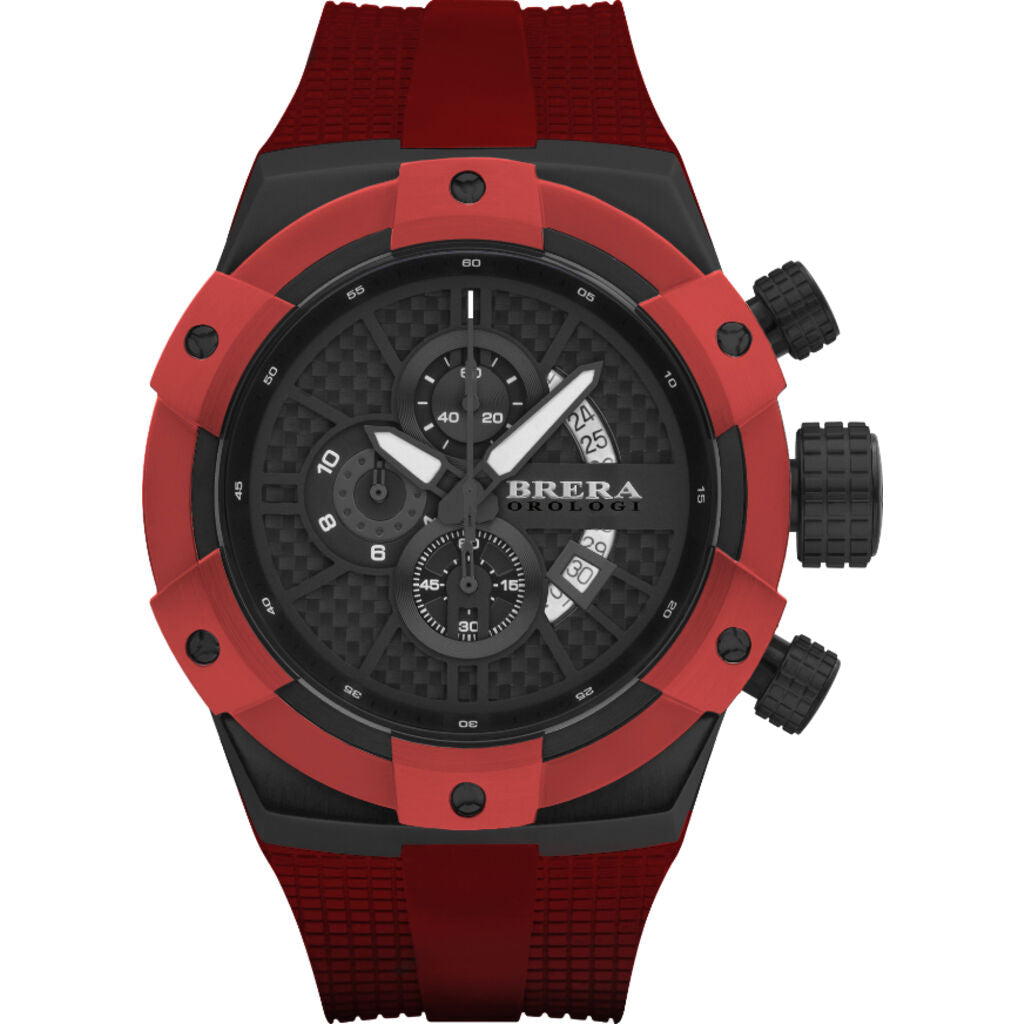 48mm and forged of 316L (stainless steel) Supersportivo demands attention and dominates the road or in this case, wrist. There are sports cars and supercars made all over the world, but Italians seem to understand how to make them pull on drivers’ heartstrings like nobody else. Italian cars have unique design profiles and always stand out in a crowd. The X factor that seems so elusive stems from being Italian. Trying to emulate the supercar feeling without the context of the Italian culture is nearly impossible. The super sport package typically includes high-performance tires, heavy-duty suspension, and increased power, along with a variety of other performance and appearance upgrades. These elite machines set new standards for production and unique styling, along with the highest measure of handling and performance available. Pure production racers with the minimum of concessions to make them street legal. The super sport are the most powerful, fastest, and sought after super machines in the world. Competition here is fierce. The oversized, manifold-style case construction creates an aggressive, disruptive design. Paired with smooth lines, subtle polishing, and delicate details, such as custom BRERA OROLOGI screws, Supersportivo captivates with a charisma all its own. Under a scratch resistant, antireflective c. sapphire crystal and triple-layer dial with wire framework, large sub-dials, and an exposed date disk, Supersportivo is powered with a quartz chronograph movement with everything needed to keep pace.