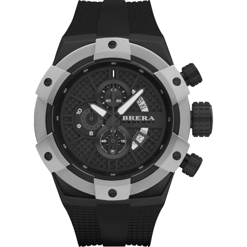 48mm and forged of 316L (stainless steel) Supersportivo demands attention and dominates the road or in this case, wrist. There are sports cars and supercars made all over the world, but Italians seem to understand how to make them pull on drivers’ heartstrings like nobody else. Italian cars have unique design profiles and always stand out in a crowd. The X factor that seems so elusive stems from being Italian. Trying to emulate the supercar feeling without the context of the Italian culture is nearly impossible. The super sport package typically includes high-performance tires, heavy-duty suspension, and increased power, along with a variety of other performance and appearance upgrades. These elite machines set new standards for production and unique styling, along with the highest measure of handling and performance available. Pure production racers with the minimum of concessions to make them street legal. The super sport are the most powerful, fastest, and sought after super machines in the world. Competition here is fierce. The oversized, manifold-style case construction creates an aggressive, disruptive design. Paired with smooth lines, subtle polishing, and delicate details, such as custom BRERA OROLOGI screws, Supersportivo captivates with a charisma all its own. Under a scratch resistant, antireflective c. sapphire crystal and triple-layer dial with wire framework, large sub-dials, and an exposed date disk, Supersportivo is powered with a quartz chronograph movement with everything needed to keep pace.