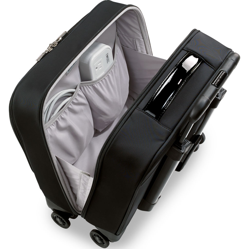 The perfect carry-on size, the Onyx Rolling Cabin Bag features a spacious main compartment with a u-shaped zip opening for easy packing. With the option to carry it by the handles or roll it behind you, this is one bag that will keep up with your jet setting life style. This black carry on bag is a great for any traveller.