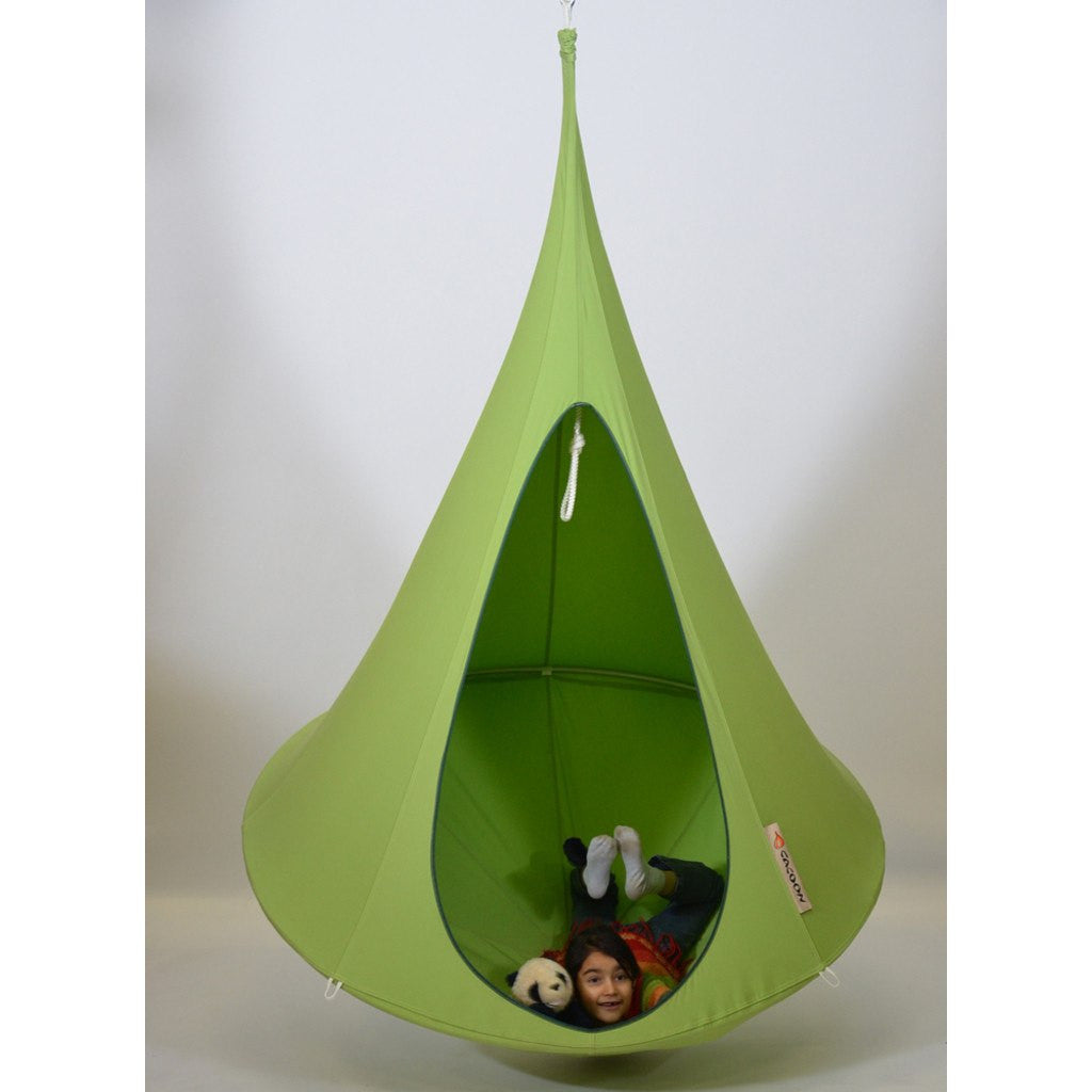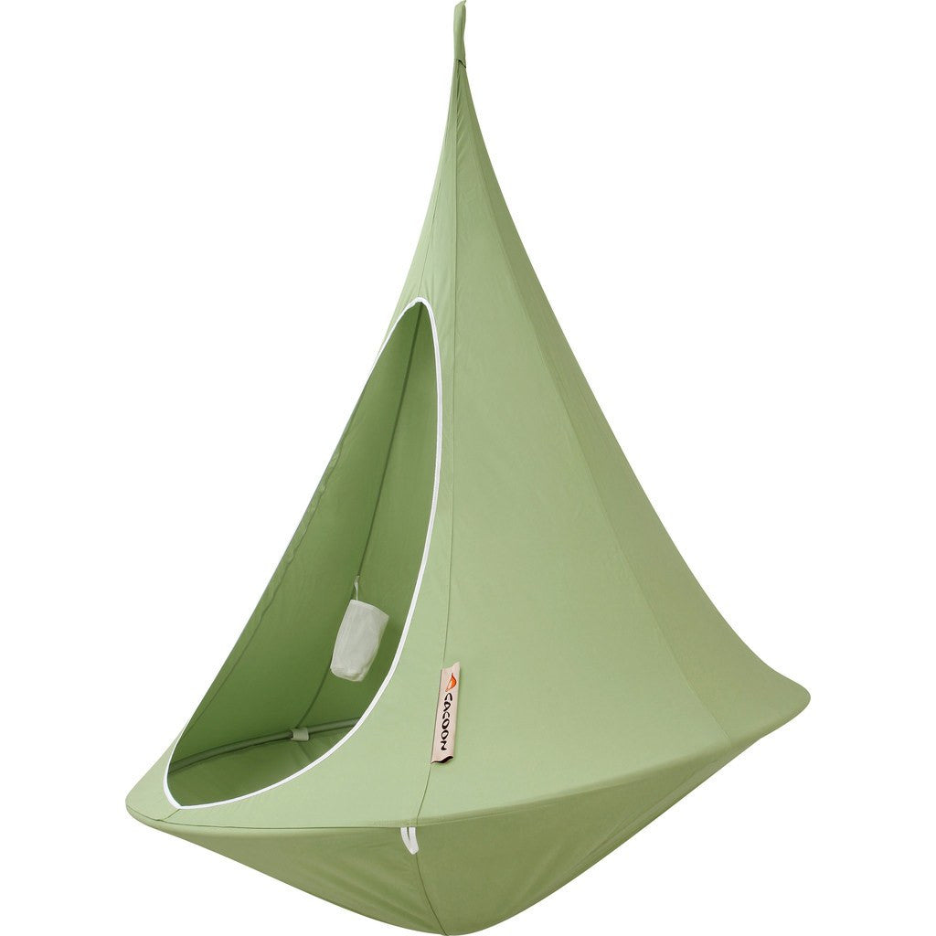 The Single Hanging Hammock is where everything began for Cacoon. This Leaf Green version is constructed with heavy duty materials and repels water. Whether you put it in the living room, hang it from a tree in your backyard or take it to the beach, the Single Cacoon is a great option for staying cozy anywhere you go.