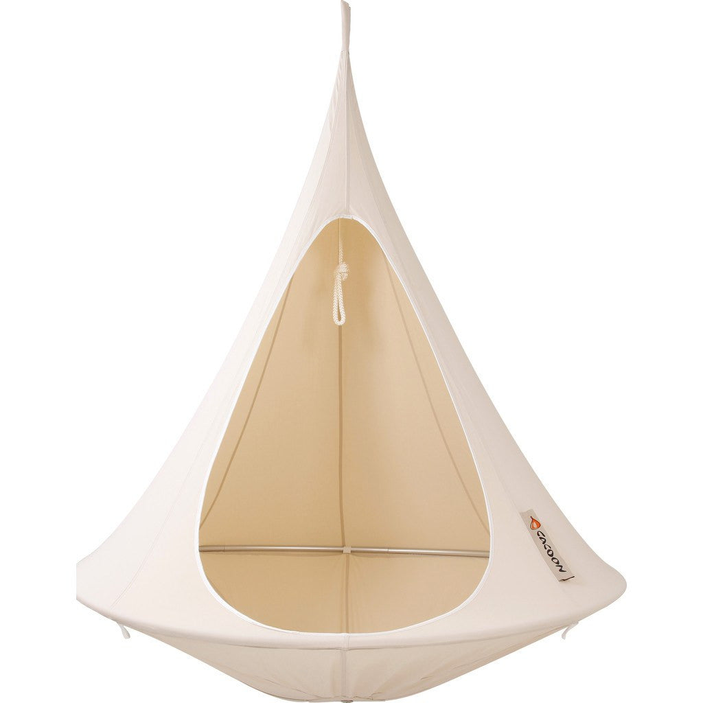 The Single Hanging Hammock is where everything began for Cacoon. This Natural version is constructed with heavy duty materials and repels water. Whether you put it in the living room, hang it from a tree in your backyard or take it to the beach, the Single Cacoon is a great option for staying cozy anywhere you go.