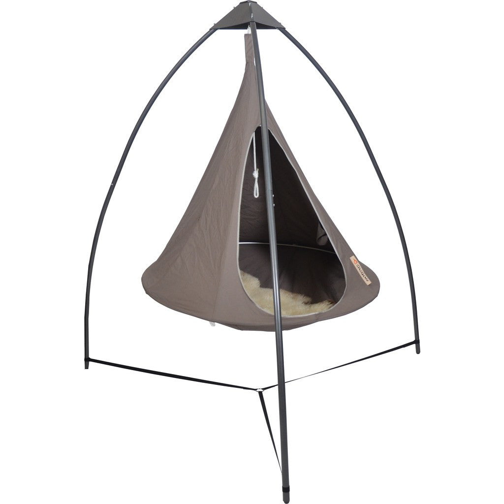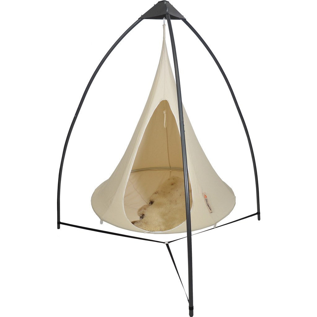 Cacoon crafts the Steel Tripod Base for your Hanging Hammocks. Constructed with powder coated steel, this stand can handle tough weather and hold a Cacoon of any size.