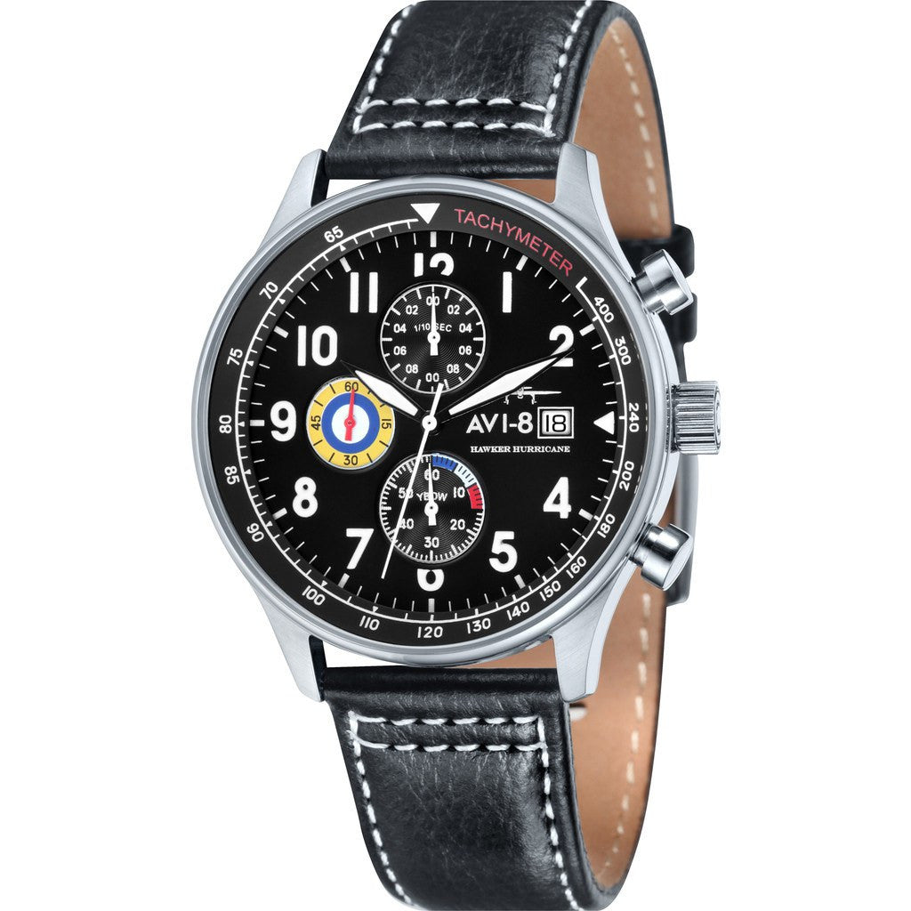 AVI-8 focuses on functionality with the Hawker Hurricane AV-4011-02 Chronograph Watch. AVI-8 crafted this watch with a black dial housed in a solid stainless steel case. Finished with a Genuine Leather Strap, this timepiece is perfect for any occasion. AVI-8 makes sure you'll always be on time with precise Japanese Quartz Chronograph movement.