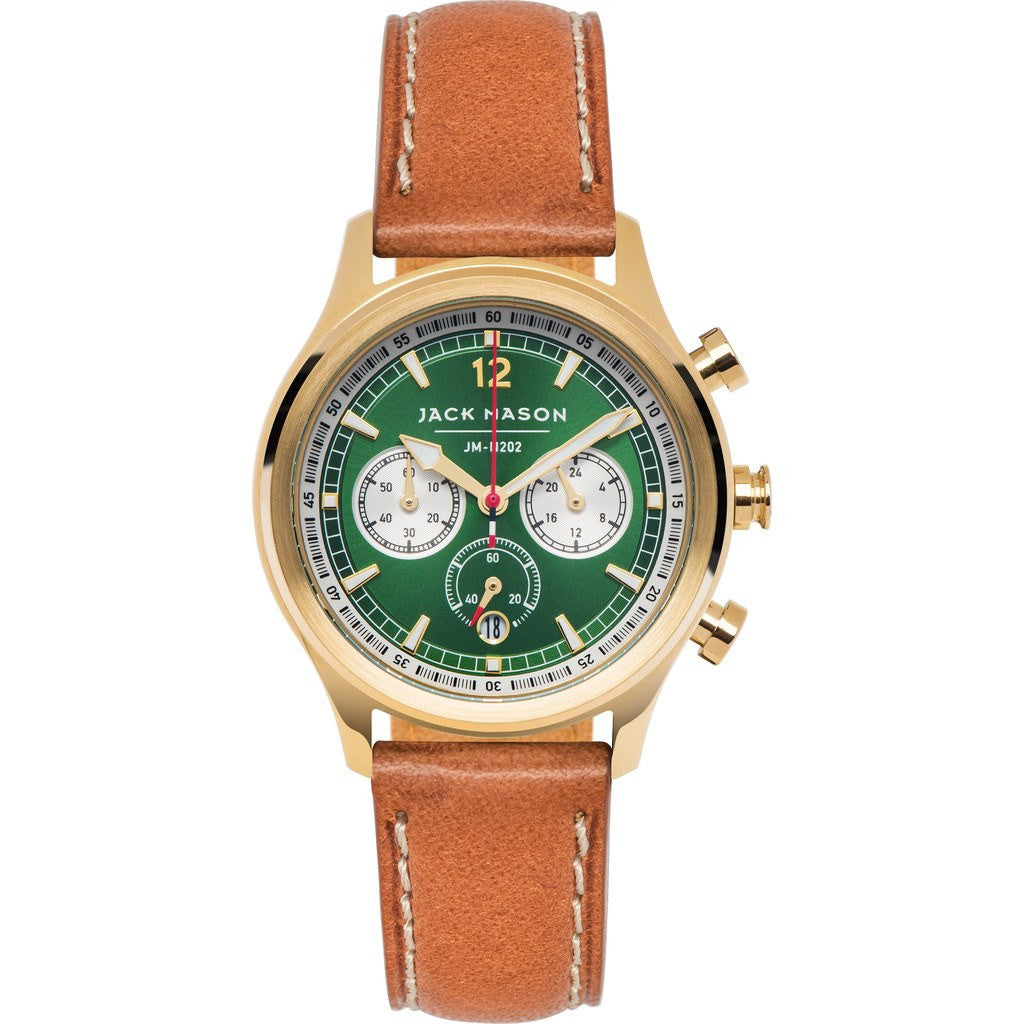 Jack Mason Green Nautical Chronograph Gold Watch 36mm | Tan Leather