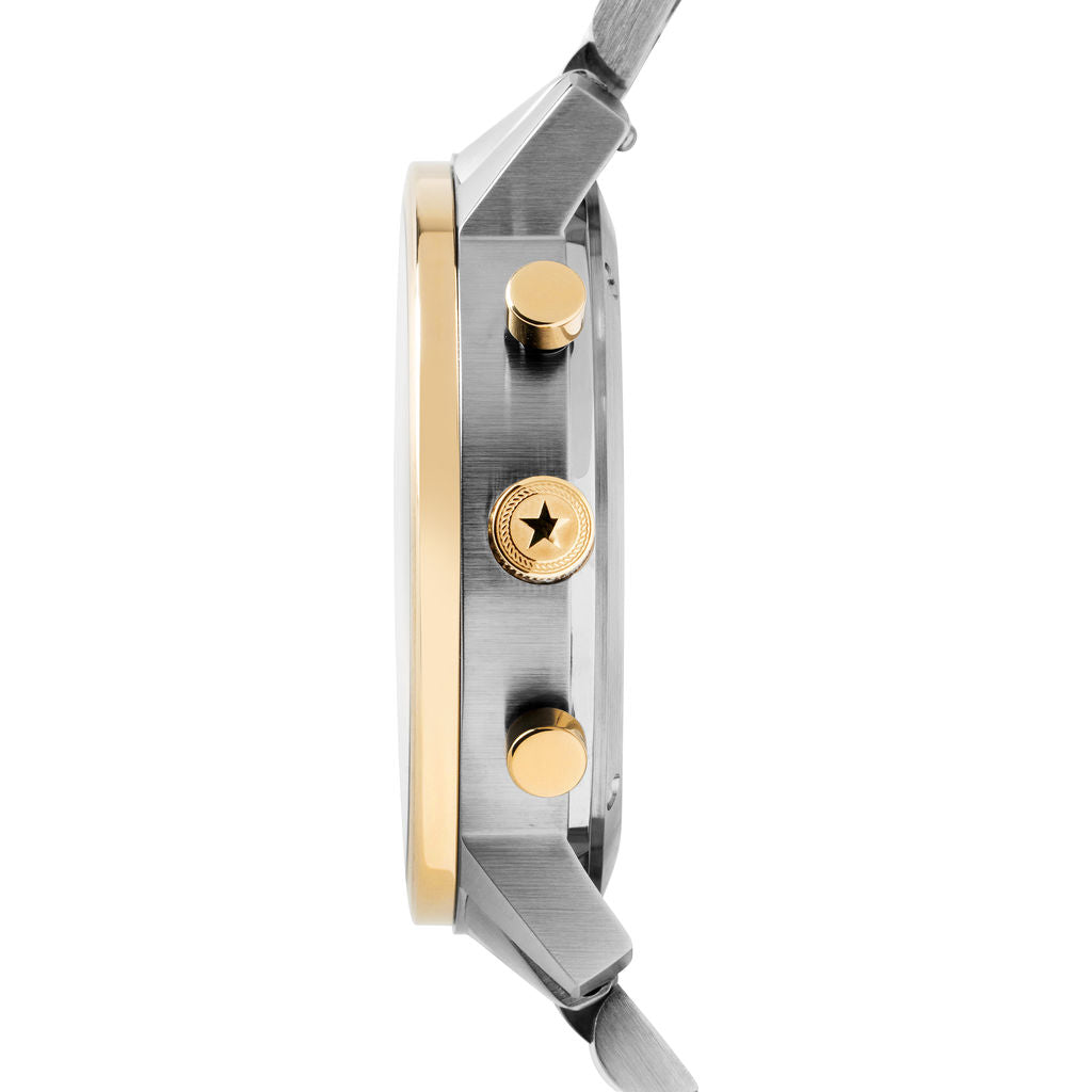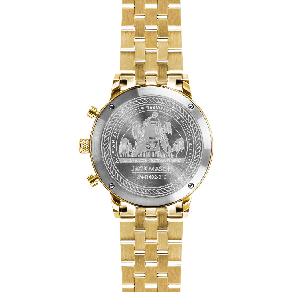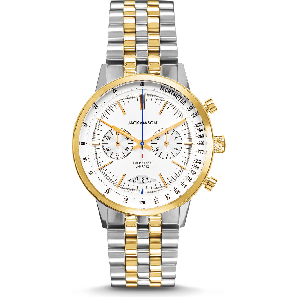 Inspired by elements of mid-century sports cars, the Jack Mason Stainless Steel Racing Chronograph 40mm is built to honor both time and speed. The 316L stainless steel case is PVD plated that is assembled and tested for water-resistance of up to 100 meters. The white dial complements the design’s sport aesthetic that is also elegant. The PVD plated bracelet is fitted with quick release pins and is compatible with any Jack Mason 18mm strap for customizable look. This Racing Chronograph 40mm features mineral crystal and a Miyota OS21 movement for the best durable performance.